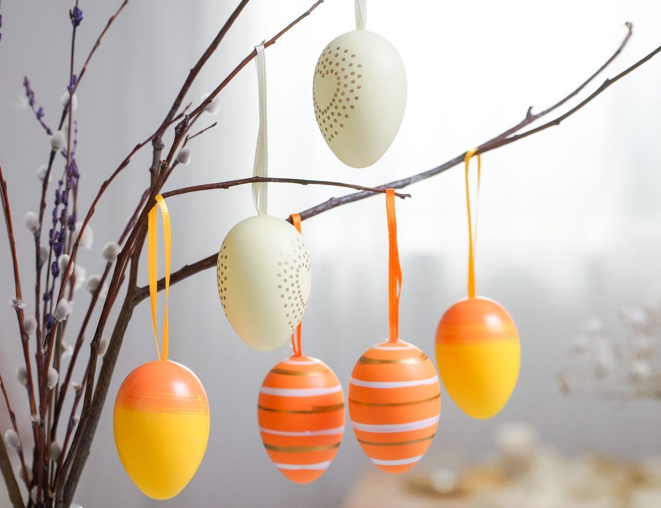 Набор подвесных пасхальных яиц ДЕНЁК В ОРАНЖЕВЫХ ТОНАХ, с полосками и сердечками, 6 см, 6 шт.