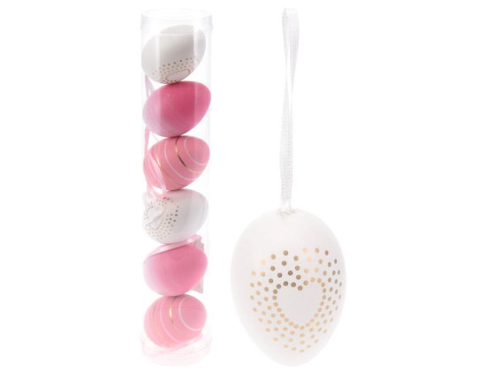 Набор подвесных пасхальных яиц ДЕНЁК В РОЗОВЫХ ТОНАХ, с полосками и сердечками, 6 см, 6 шт.