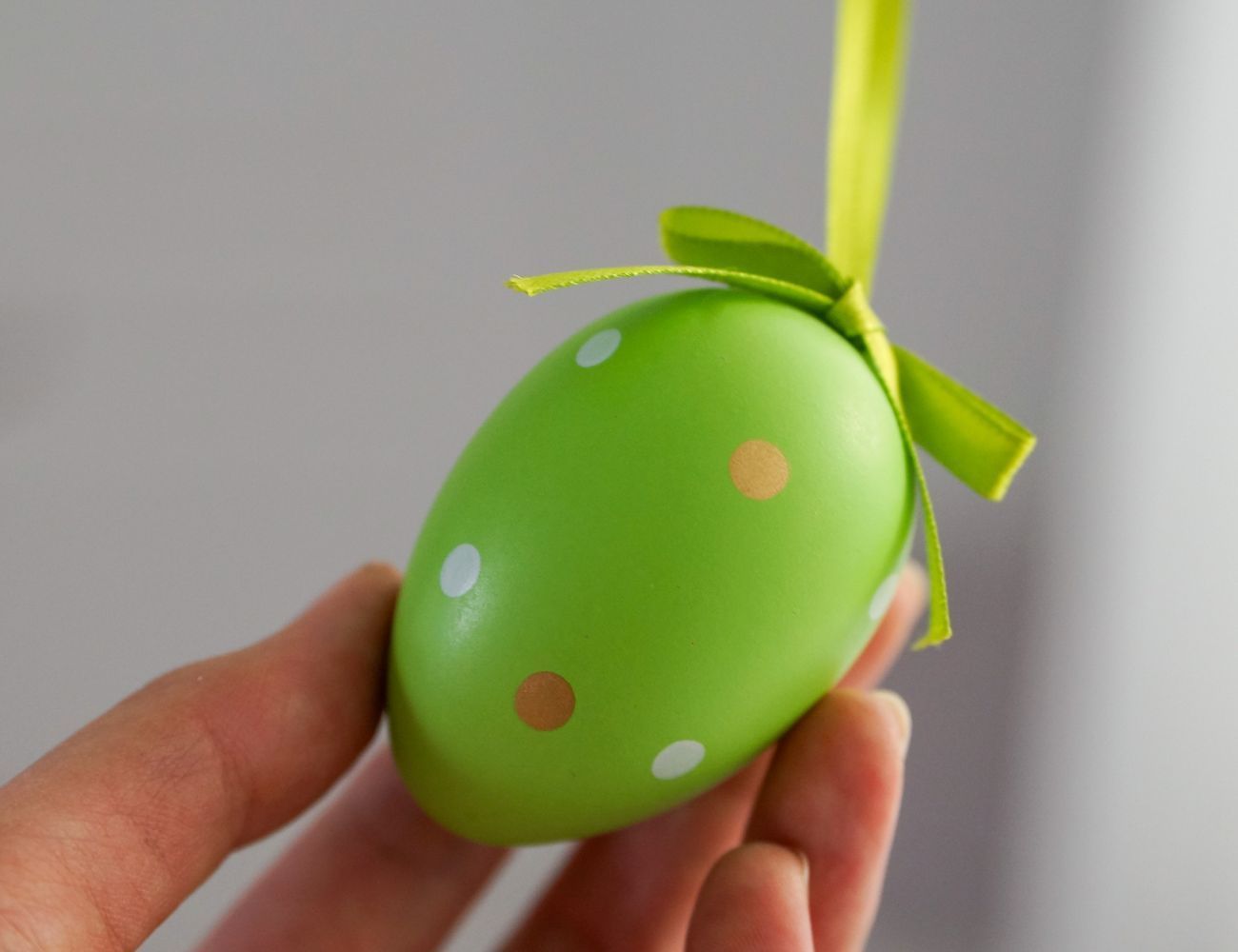 Набор подвесных пасхальных яиц ДЕНЁК В САЛАТОВЫХ ТОНАХ, в золотисто-белый горошек, 6 см, 6 шт.