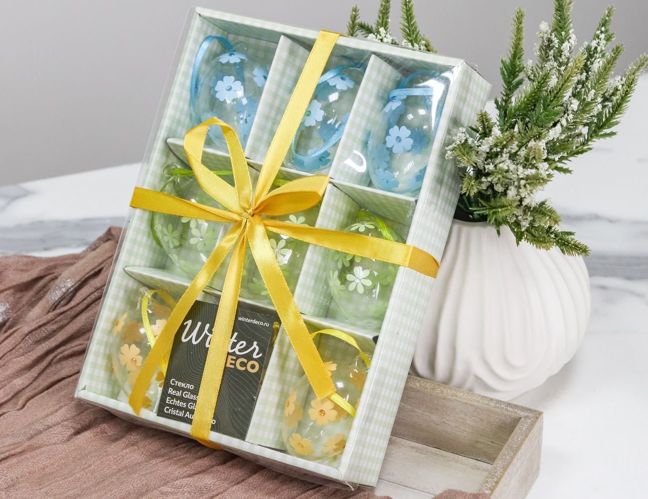 Набор украшений-яиц ВОЗДУШНЫЕ НЕЗАБУДКИ, стекло, 6 см, 9 шт.