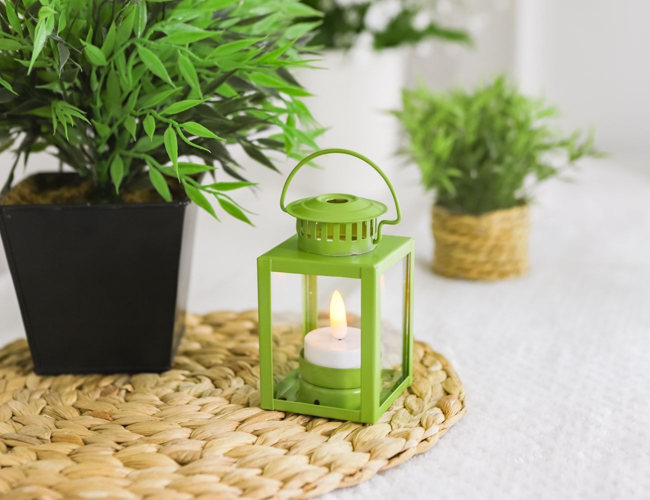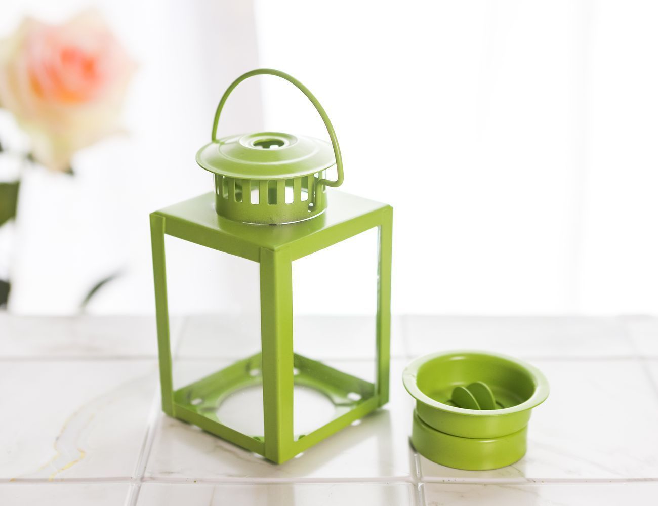 Декоративный подсвечник-фонарь НОЛАН, металл, стекло, салатовый, 10 см