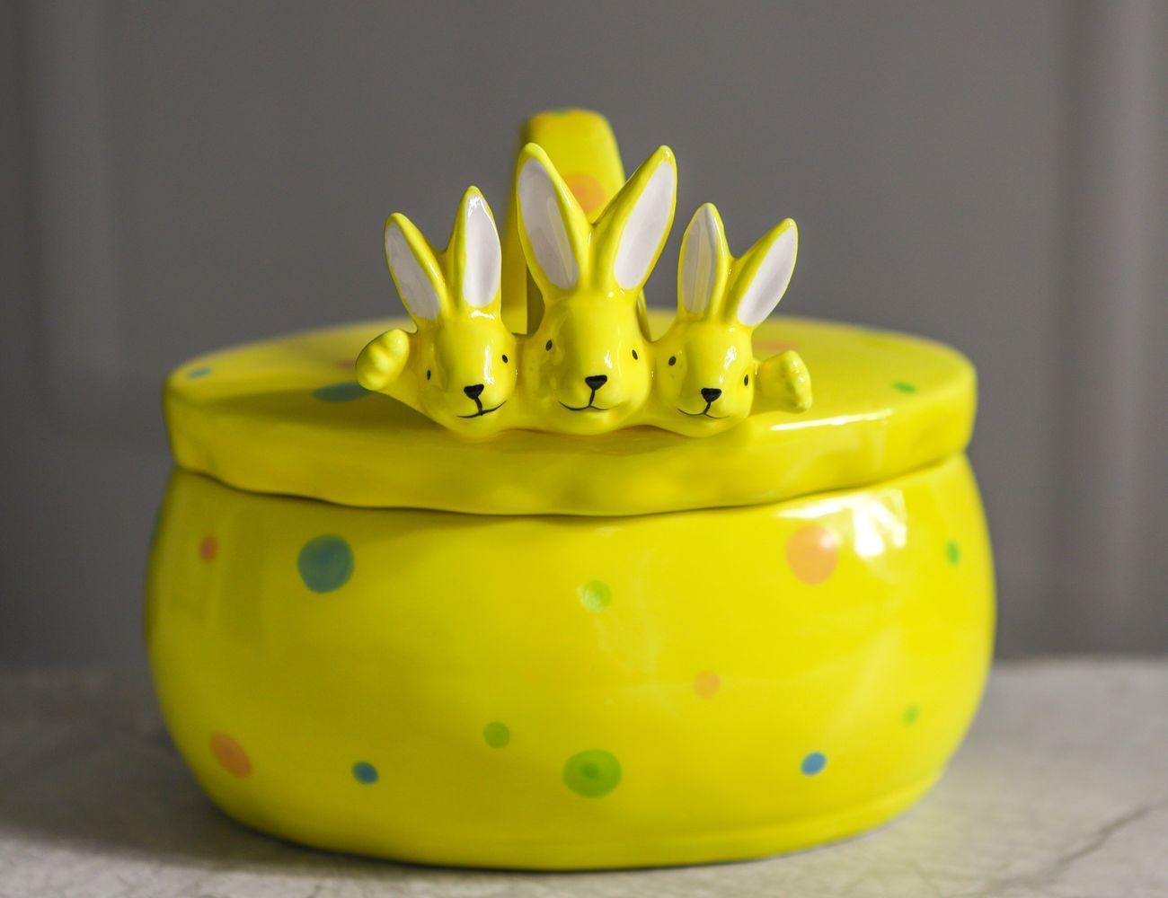 Пасхальная коллекция. Конфетница с крышкой ТРИ УШАСТИКА, керамика, жёлтая, 17х15 см XPA23003171-1. IntexCorp - интернет магазин.