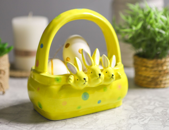Пасхальная коллекция. Конфетница-корзинка ТРИ УШАСТИКА, керамика, жёлтая, 15 см XPA23003211-3. IntexCorp - интернет магазин.