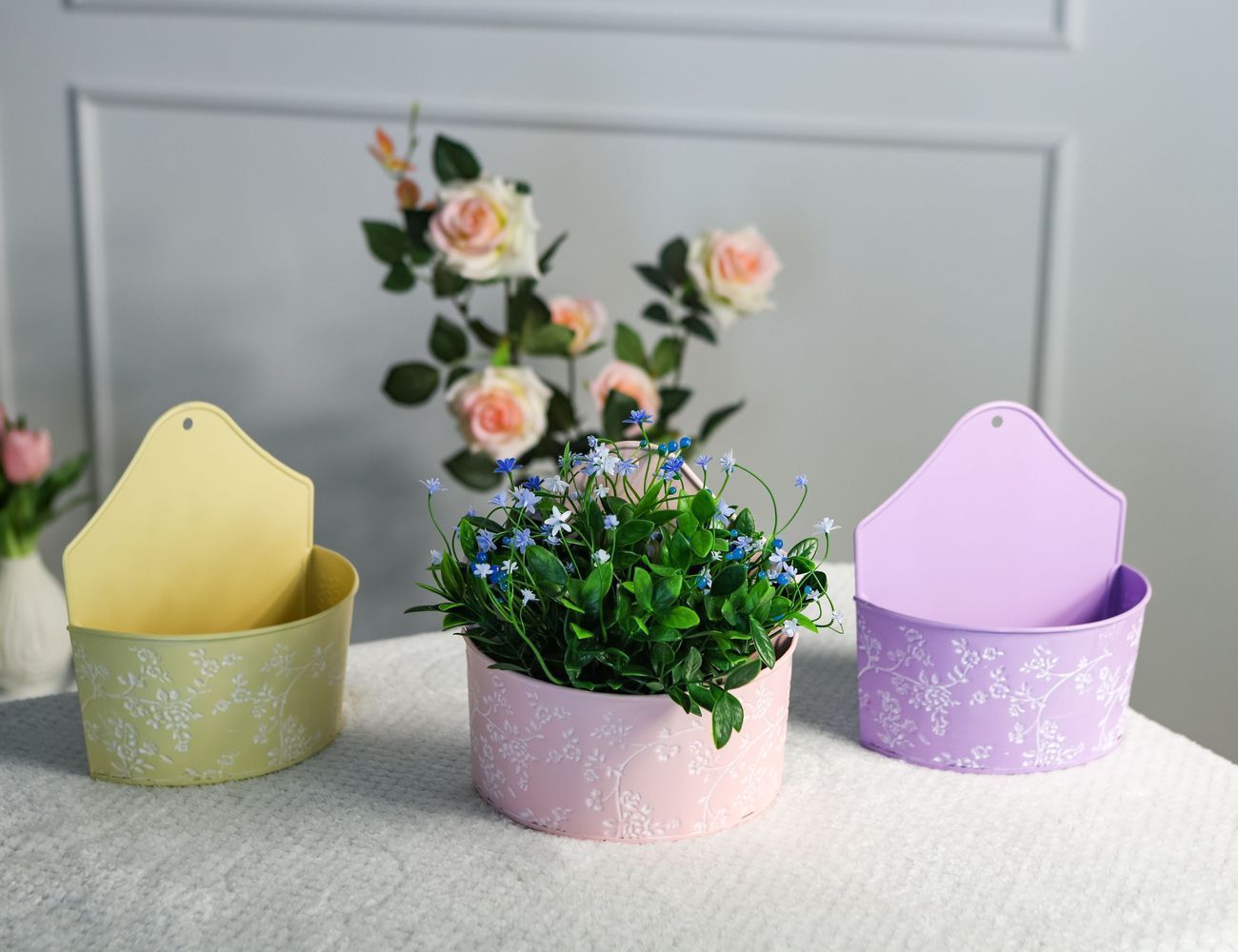 Изображение Настенное декоративное кашпо ЛЕТНЯЯ АКВАРЕЛЬ розовое, 20х10х22 см Настенное декоративное кашпо ЛЕТНЯЯ АКВАРЕЛЬ сиреневое, 20х10х22 см Настенное декоративное кашпо ЛЕТНЯЯ АКВАРЕЛЬ желтое, 20х10х22 см