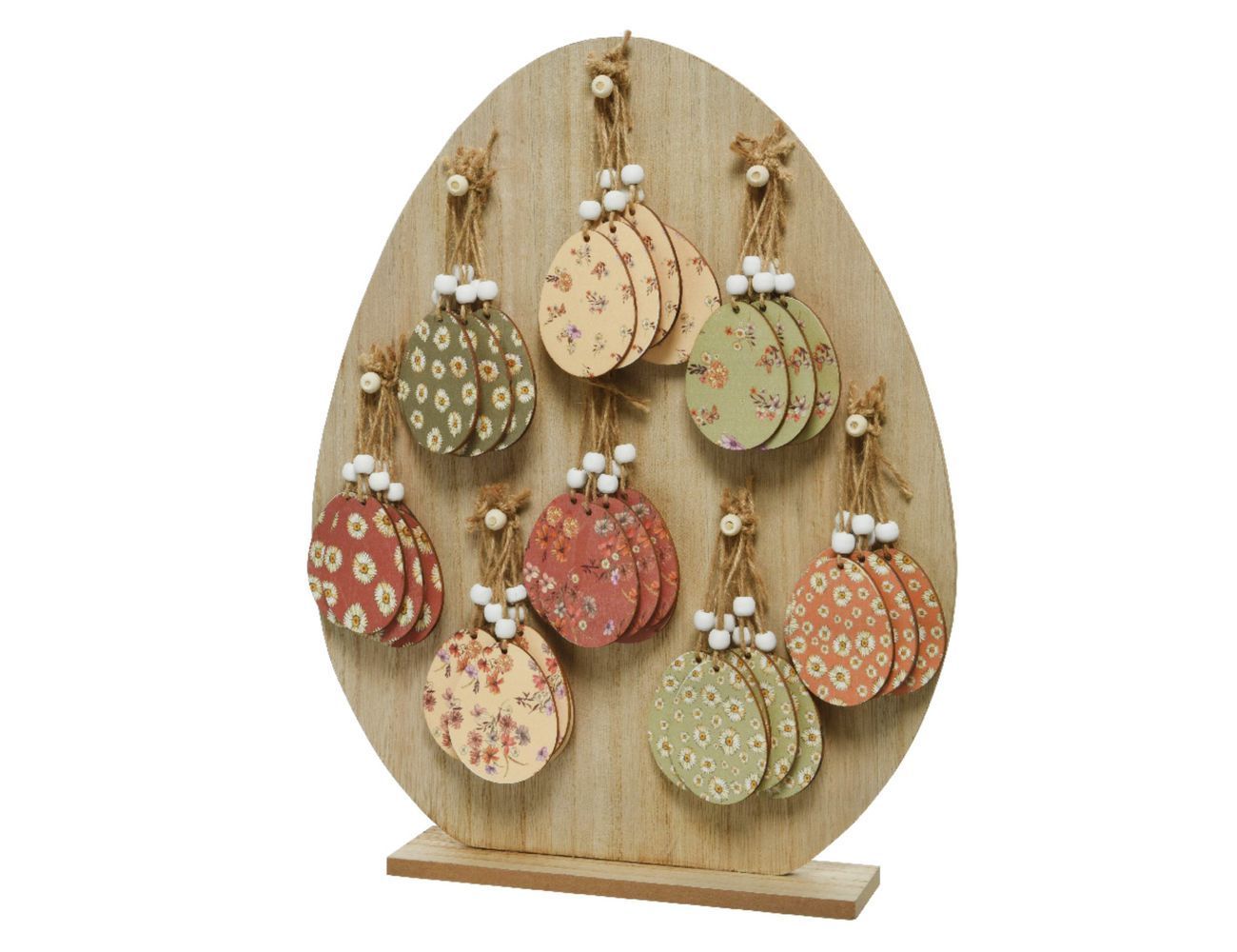 Декоративные пасхальные яйца ЦВЕТОЧНОЕ АССОРТИ, дерево, 7 см, 8 шт.