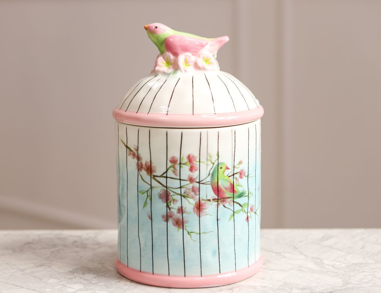 Порой достаточно одного простого предмета, чтобы даже самое серое утро заиграло яркими красками, а самое пасмурное настроение развеялось, как туман. Очаровательная керамическая ёмкость, где на цветущих ветках и крышечке поют райские птички, именно такой предмет: вы можете использовать её как конфетницу, сахарницу или бисквитницу - в любом случае, она будет настоящим лекарством от стресса!