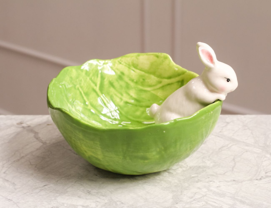 Декоративное блюдо ЗАЙЧИК И КАПУСТА, керамика, 14 см