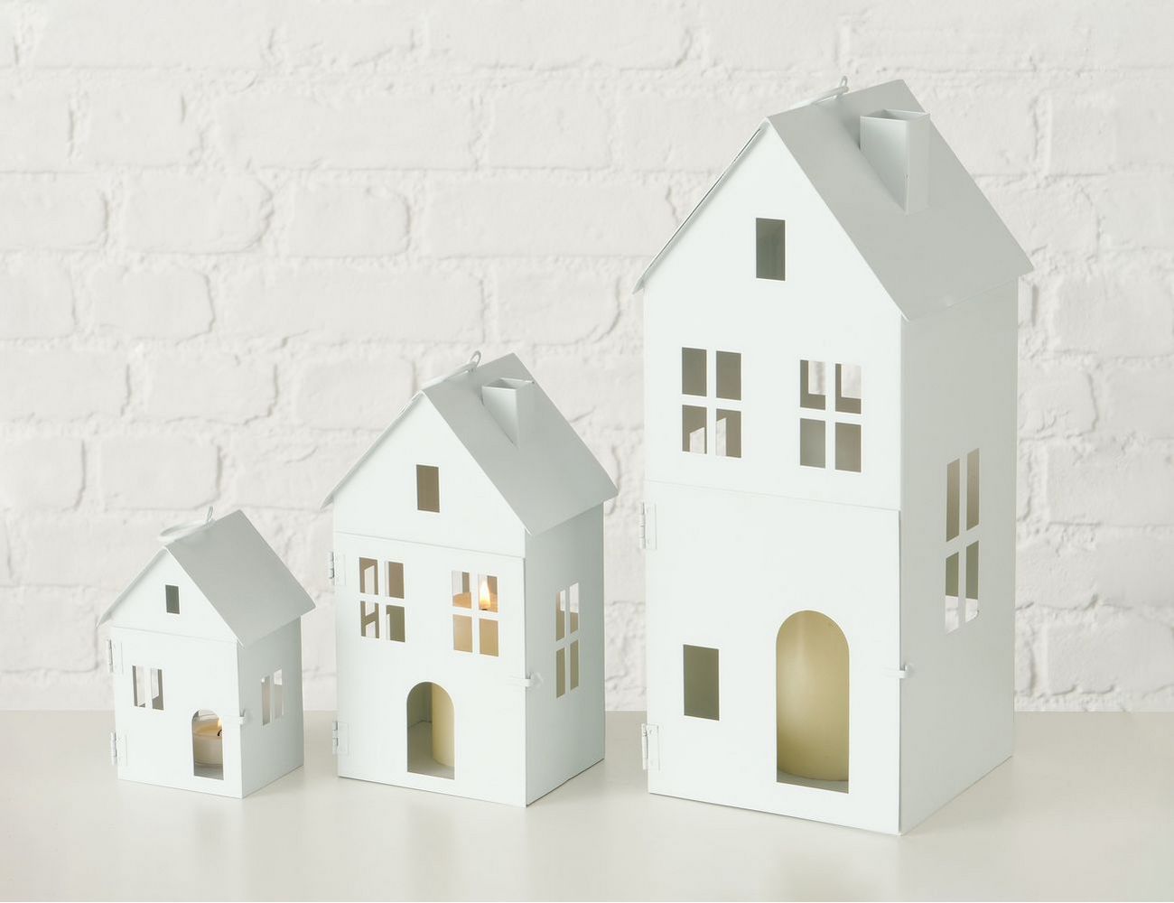 Набор подсвечников-домиков ФЛЕНСБУРГ, металл, белый, 13-35 см, 3 шт.