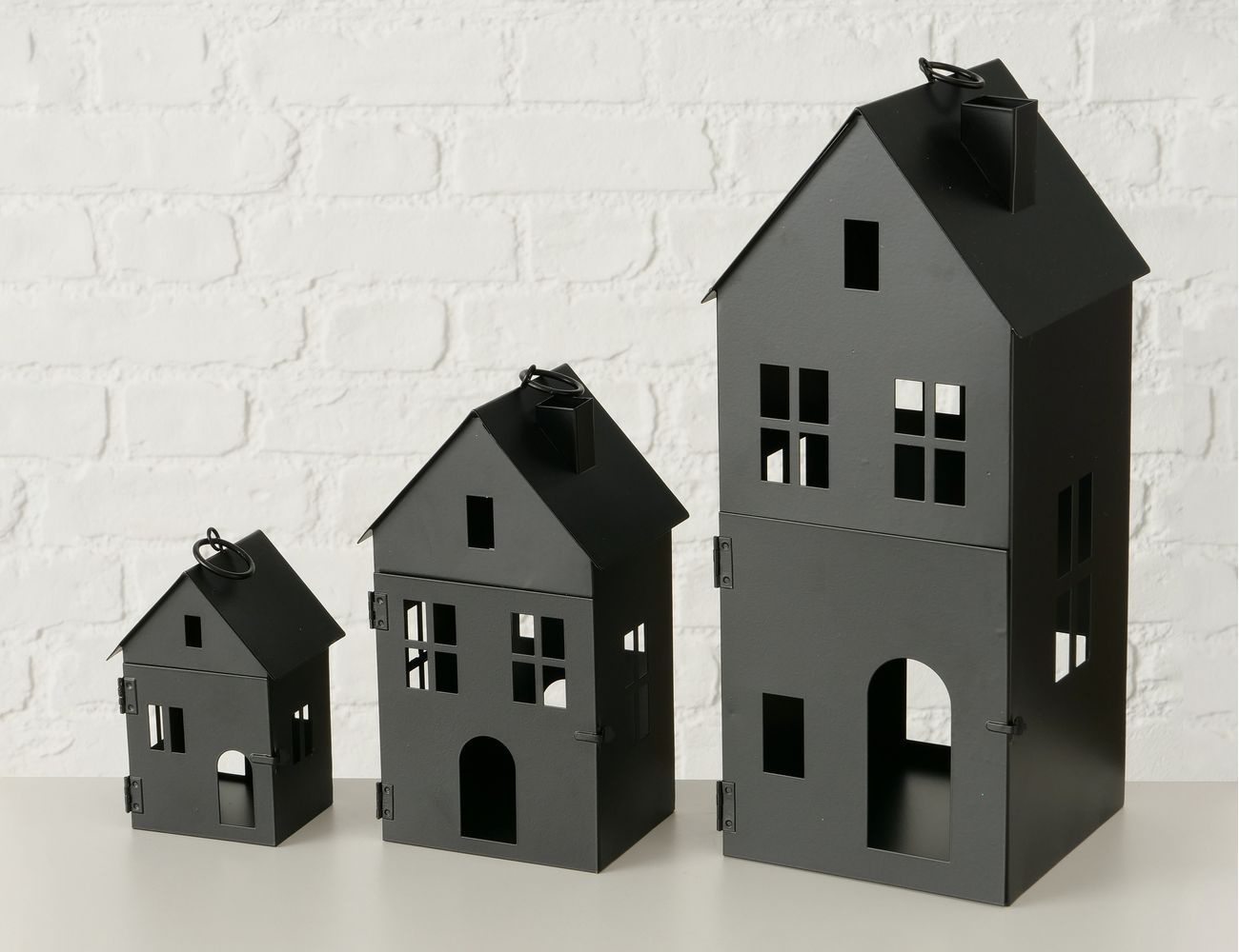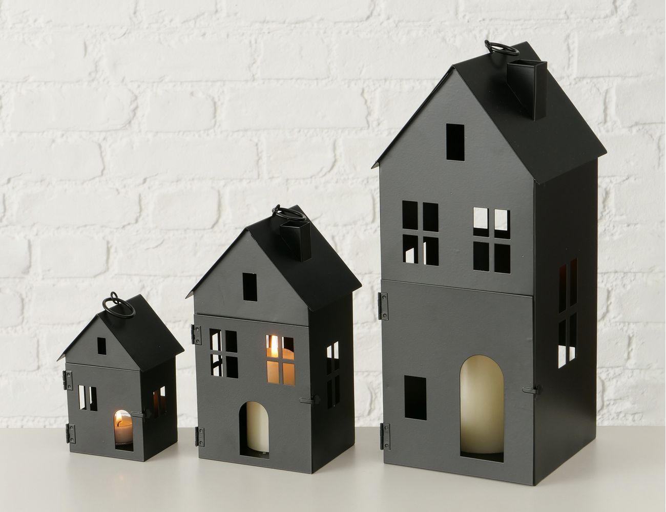 Изображение Набор подсвечников-домиков ФЛЕНСБУРГ, металл, белый, 13-35 см, 3 шт. Набор подсвечников-домиков ФЛЕНСБУРГ, металл, чёрный, 13-35 см, 3 шт.