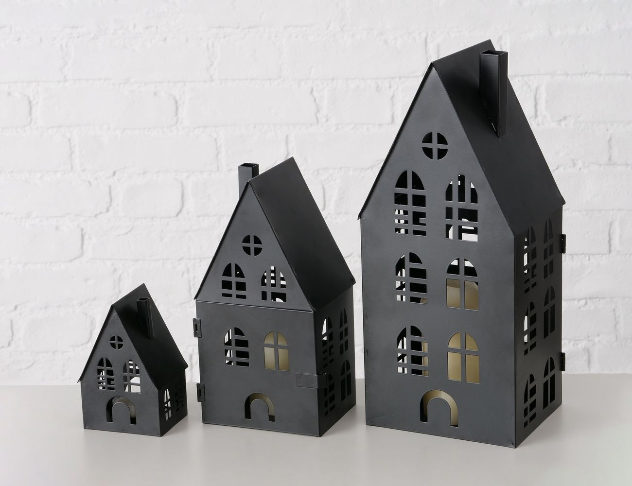 Набор подсвечников-домиков ХЕМНЕСБЕРГ, металл, чёрный, 13-35 см, 3 шт.