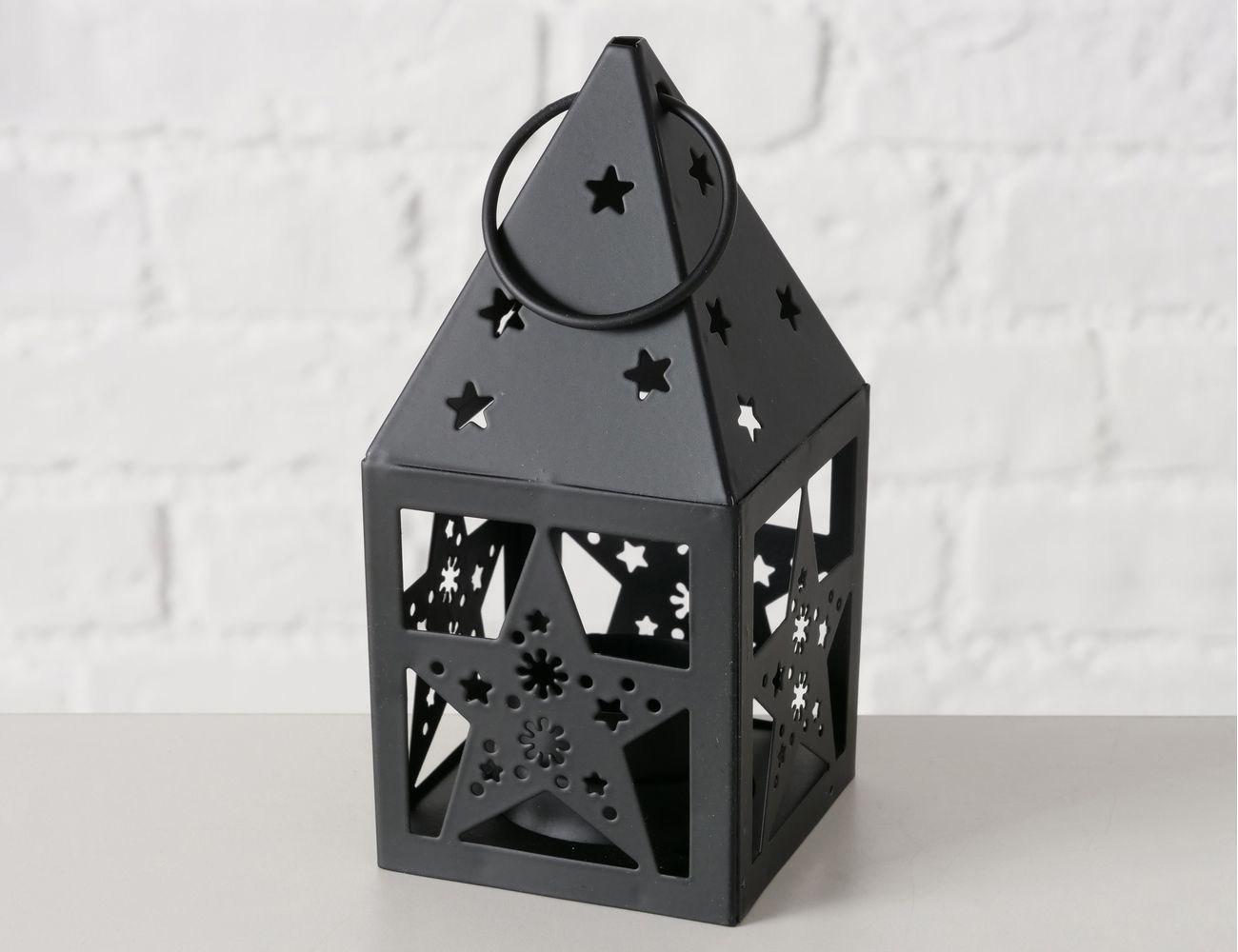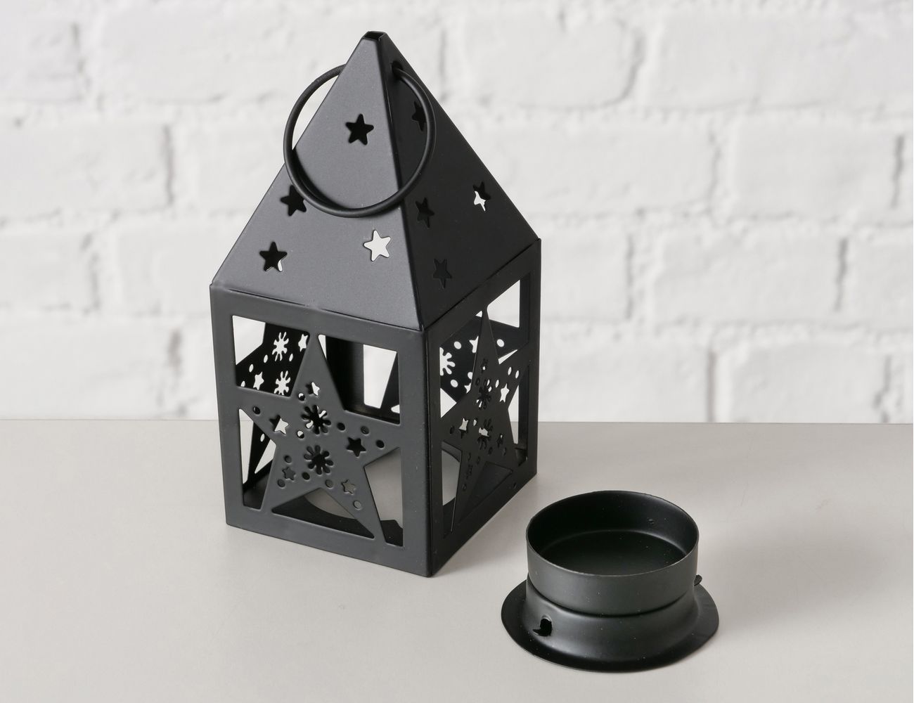 Изображение Декоративный подсвечник-фонарь ДОМИК СО ЗВЁЗДАМИ, металл, белый, 14 см Декоративный подсвечник-фонарь ДОМИК СО ЗВЁЗДАМИ, металл, чёрный, 14 см
