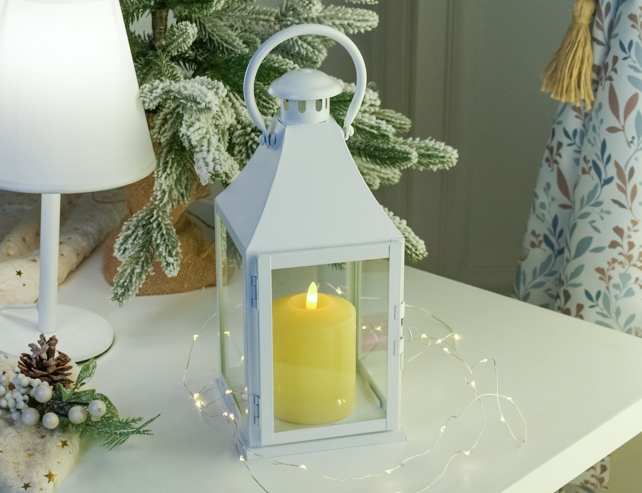 Изображение Подсвечник-фонарь КЕМПБЭЛ, металл, стекло, белый, 29 см Подсвечник-фонарь КЕМПБЭЛ, металл, стекло, белый, 40 см