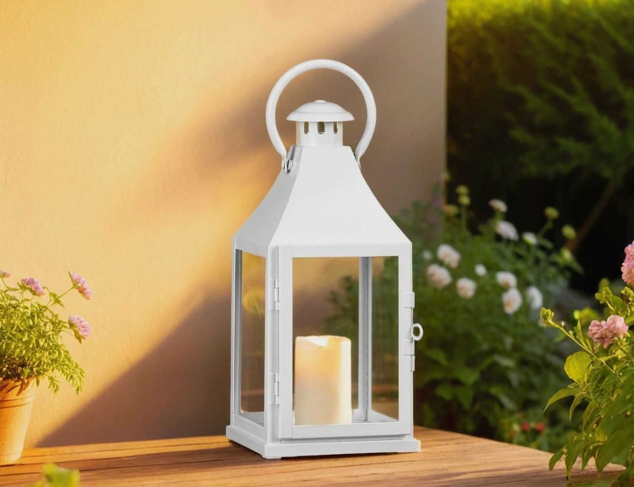 Подсвечник-фонарь КЕМПБЭЛ, металл, стекло, белый, 29 см
