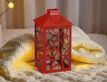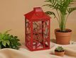 Декоративный подсвечник-фонарь СТАРФОЛ, металл, стекло, красный, 28 см