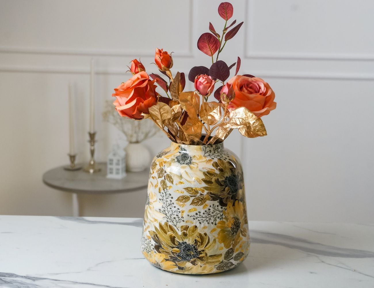 Декоративная ваза ЗОЛОТО ХРИЗАНТЕМ, металл, 24 см