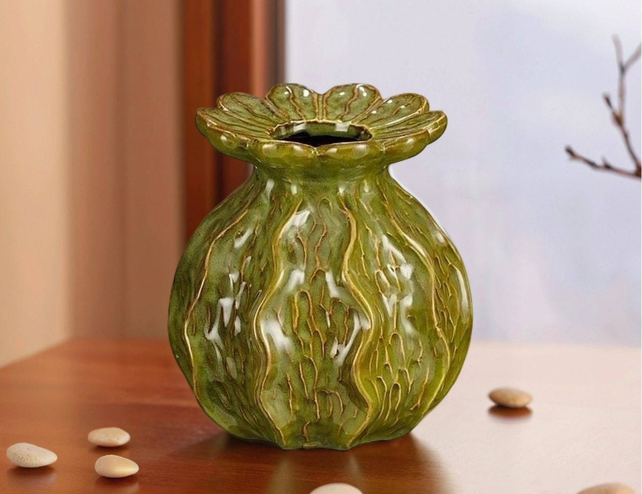 Декоративная ваза ЭБИГЕЙЛ, оливковая, 18 см