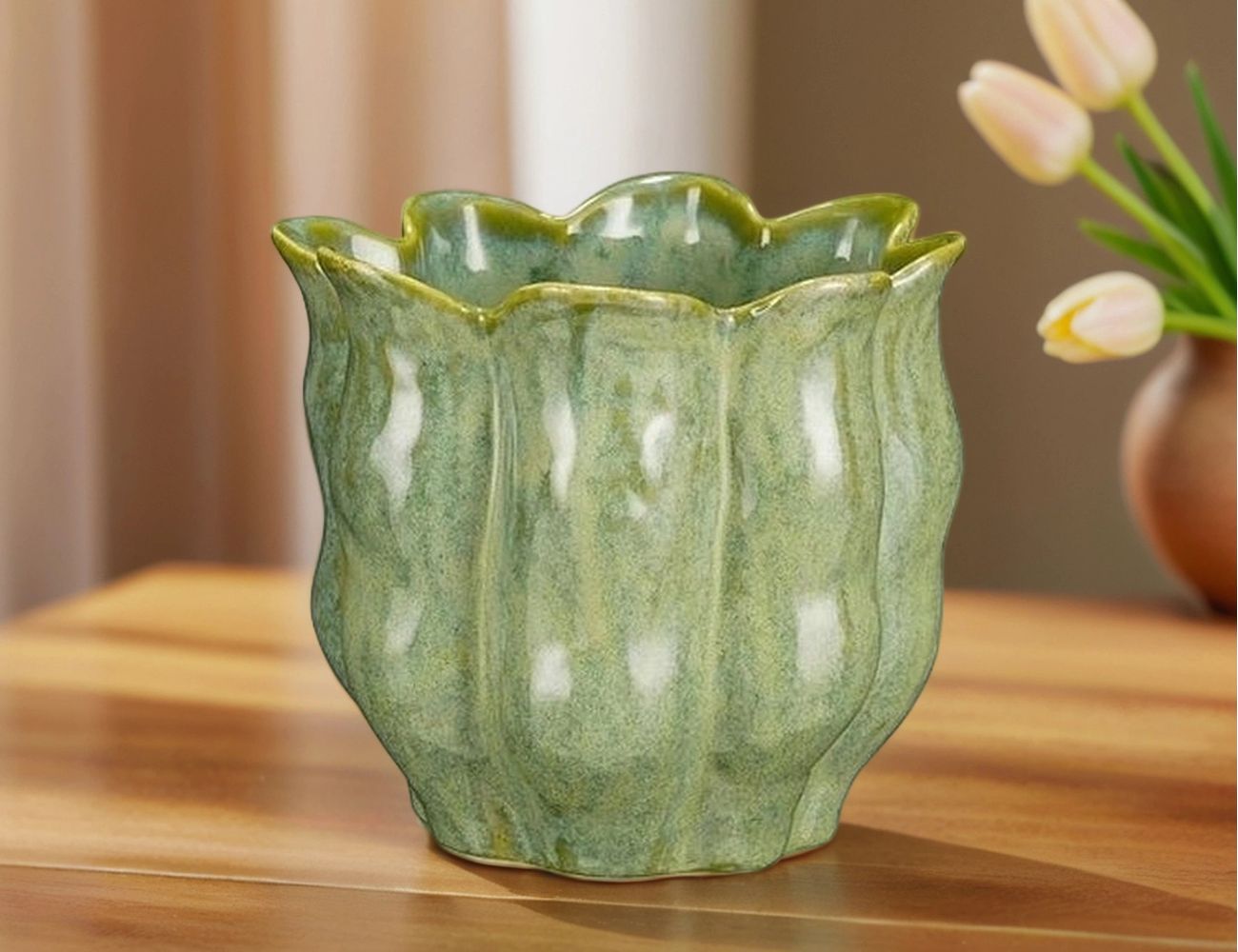 Декоративная ваза-кашпо ПИАНТА, зелёная, 17х15 см