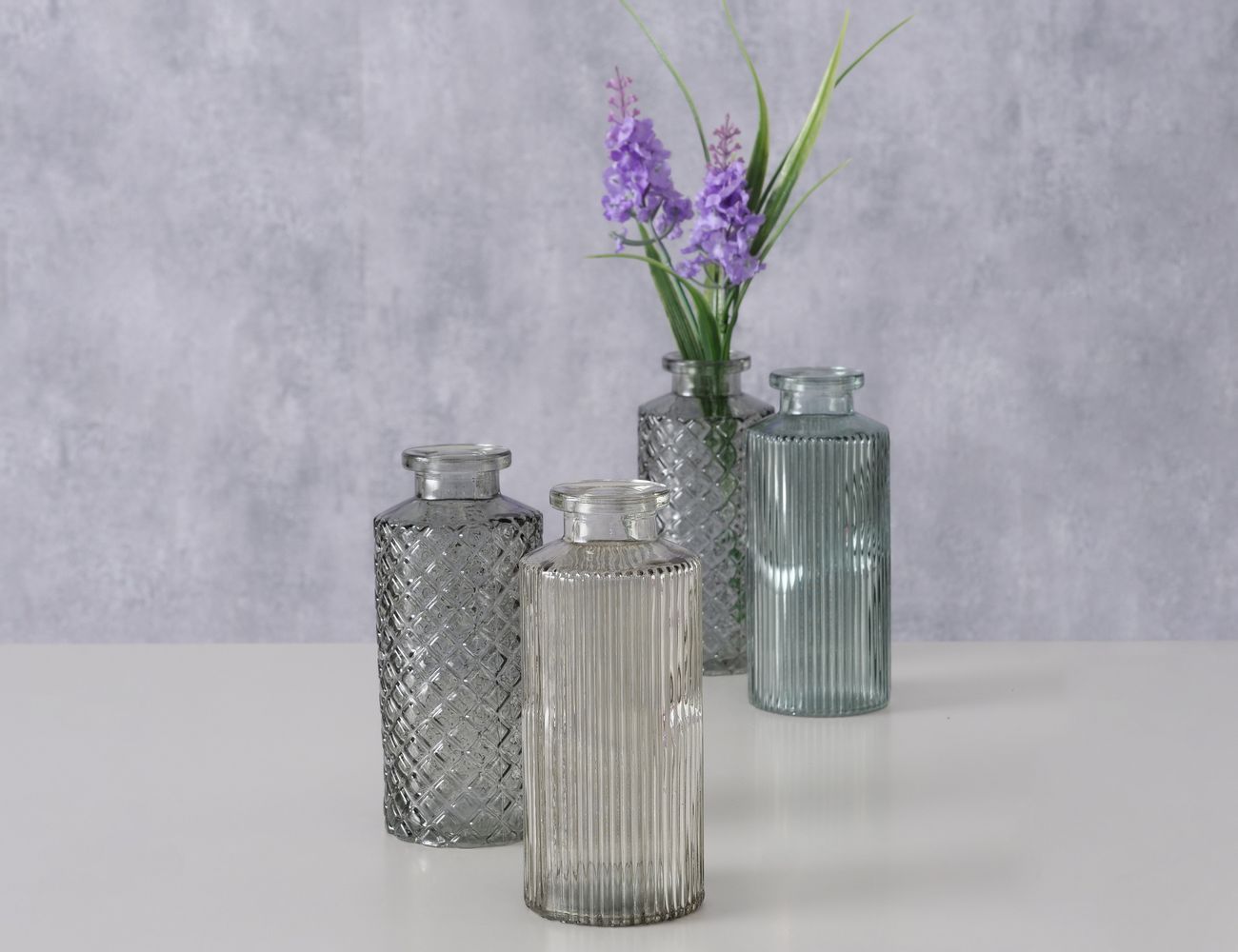 Набор декоративных ваз-бутылей ФОДЕРАТО, стекло, дымчатый, 14 см, 4 шт.
