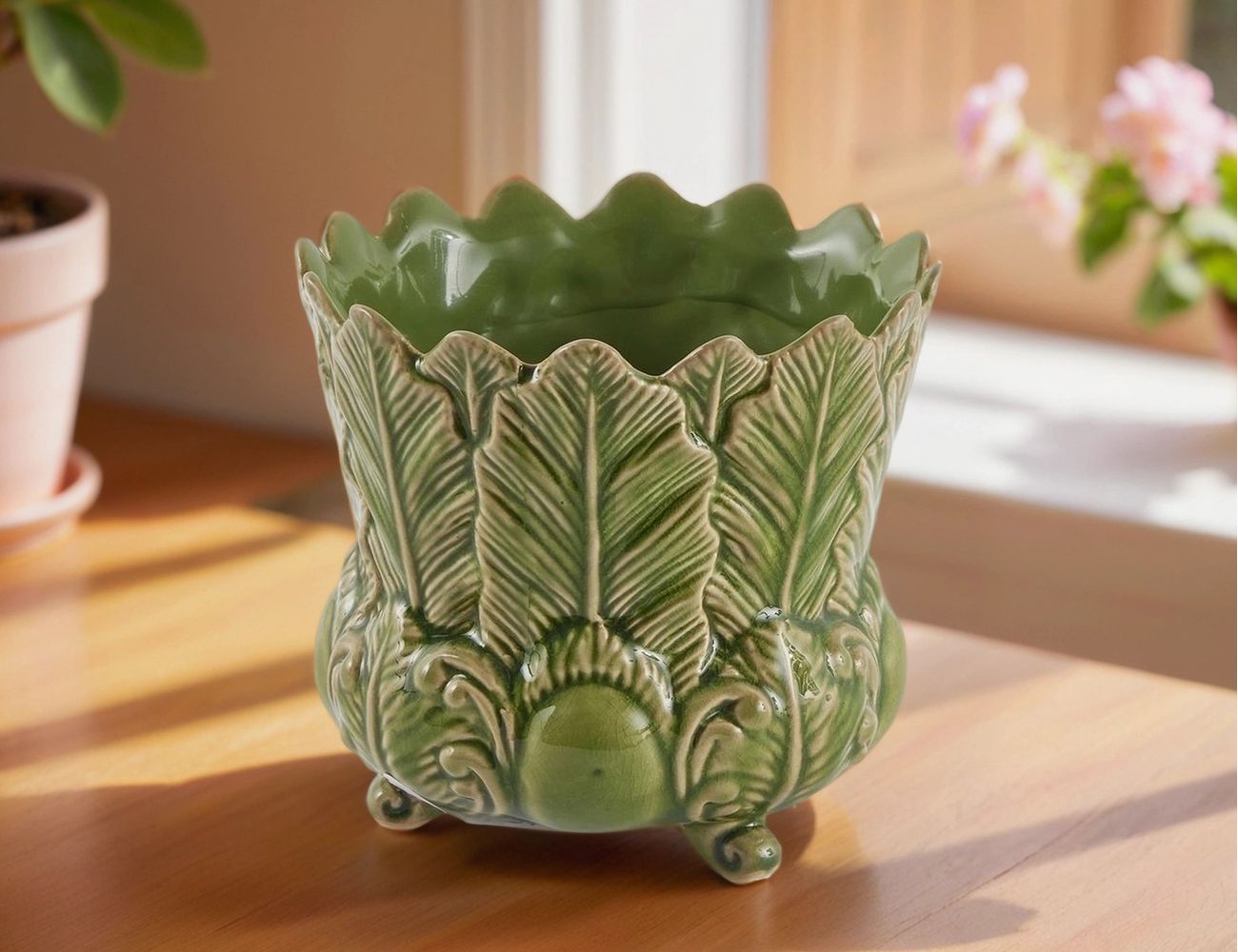 Товары для дачи и сада. Декоративная ваза-кашпо ФОЛЬЯЖ, керамика, зелёная, 13 см 1100909A700. IntexCorp - интернет магазин.