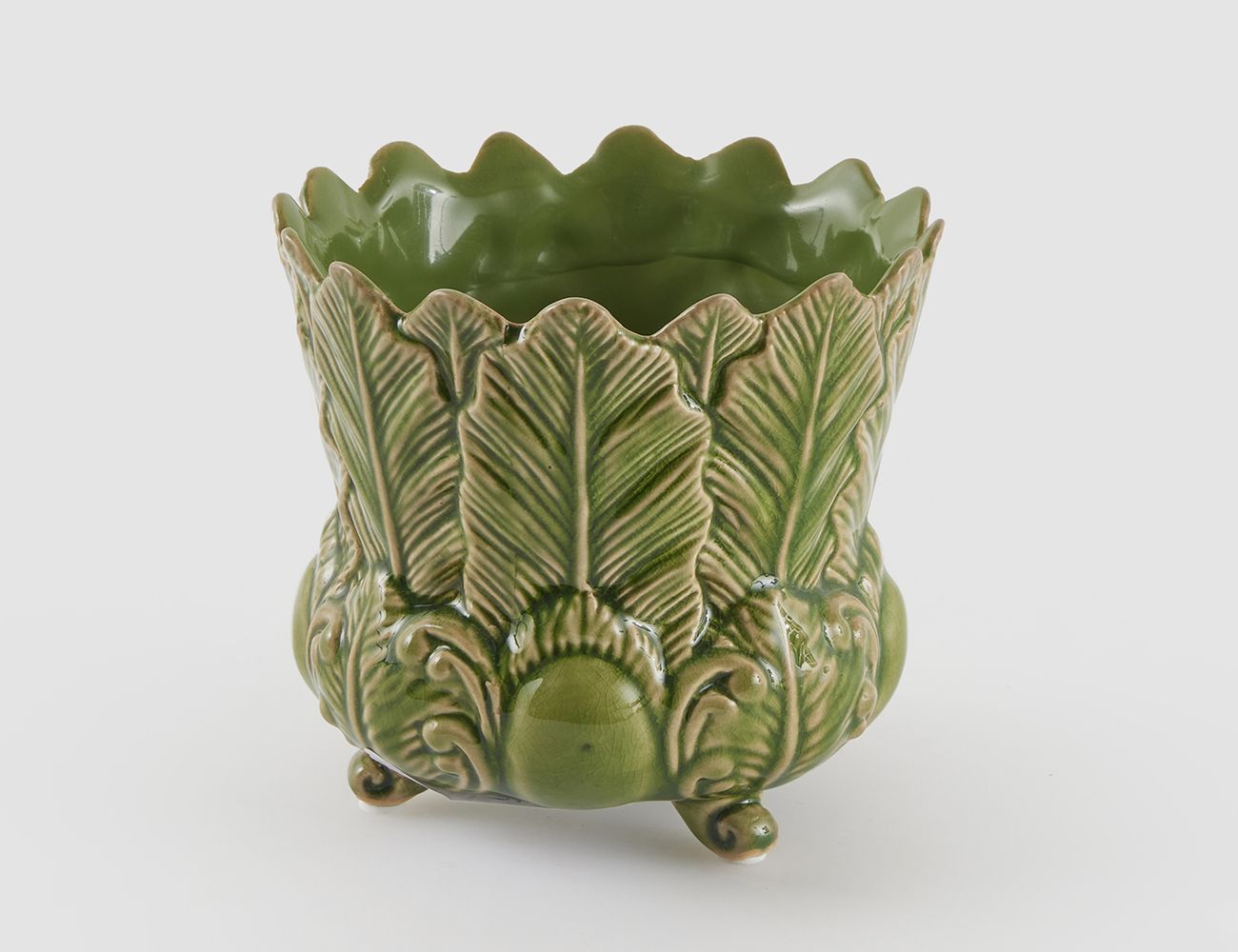 Декоративная ваза-кашпо ФОЛЬЯЖ, керамика, зелёная, 13 см