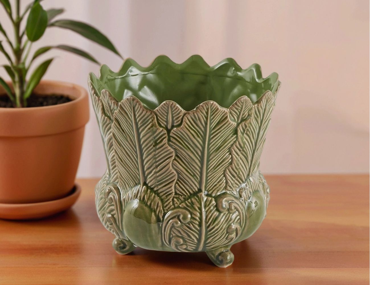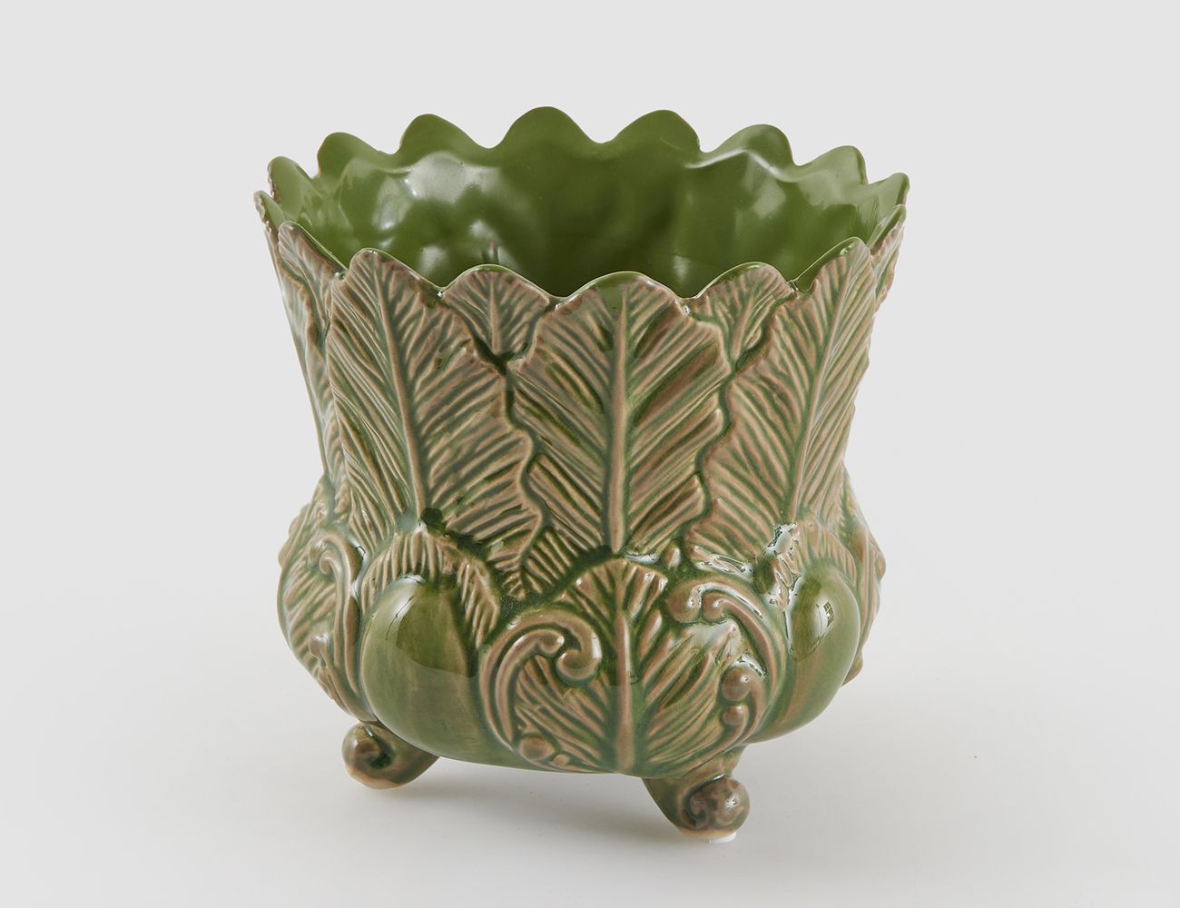 Декоративная ваза-кашпо ФОЛЬЯЖ, керамика, зелёная, 15 см