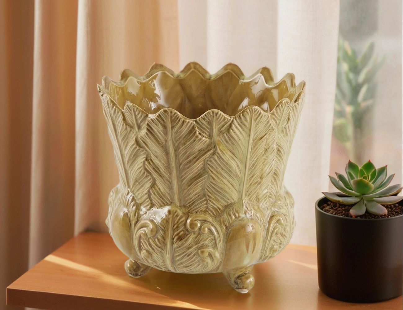 Товары для дачи и сада. Декоративная ваза-кашпо ФОЛЬЯЖ, керамика, песочная, 15 см 1100910A779. IntexCorp - интернет магазин.