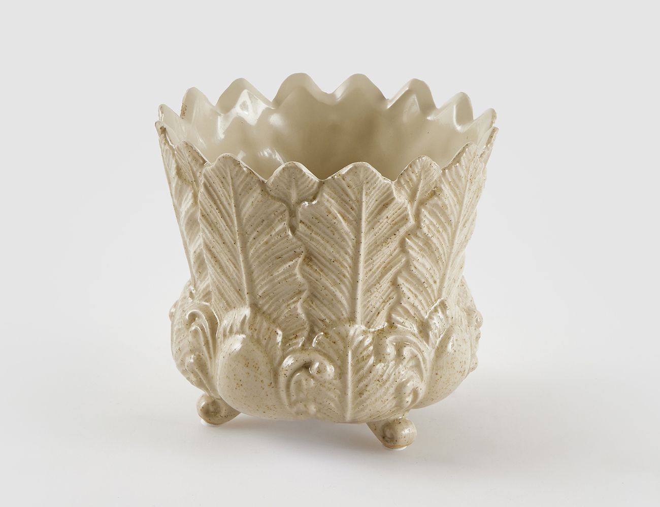 Декоративная ваза-кашпо ФОЛЬЯЖ, керамика, сливочная, 13 см