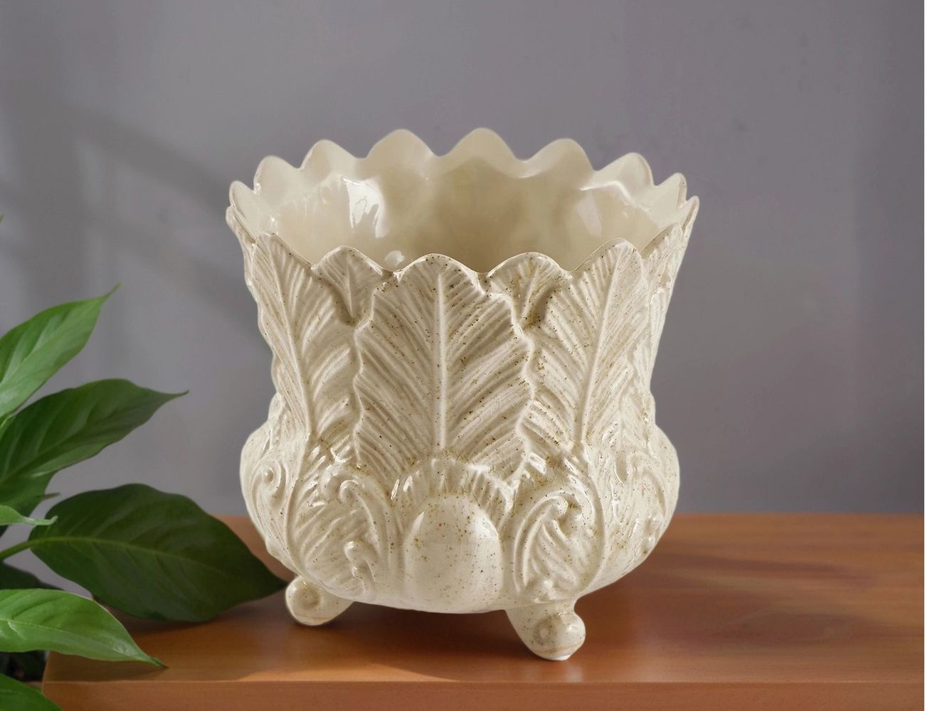 Декоративная ваза-кашпо ФОЛЬЯЖ, керамика, сливочная, 15 см