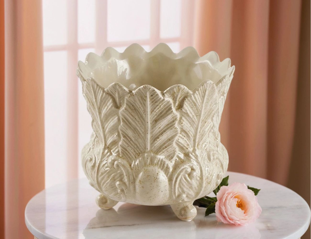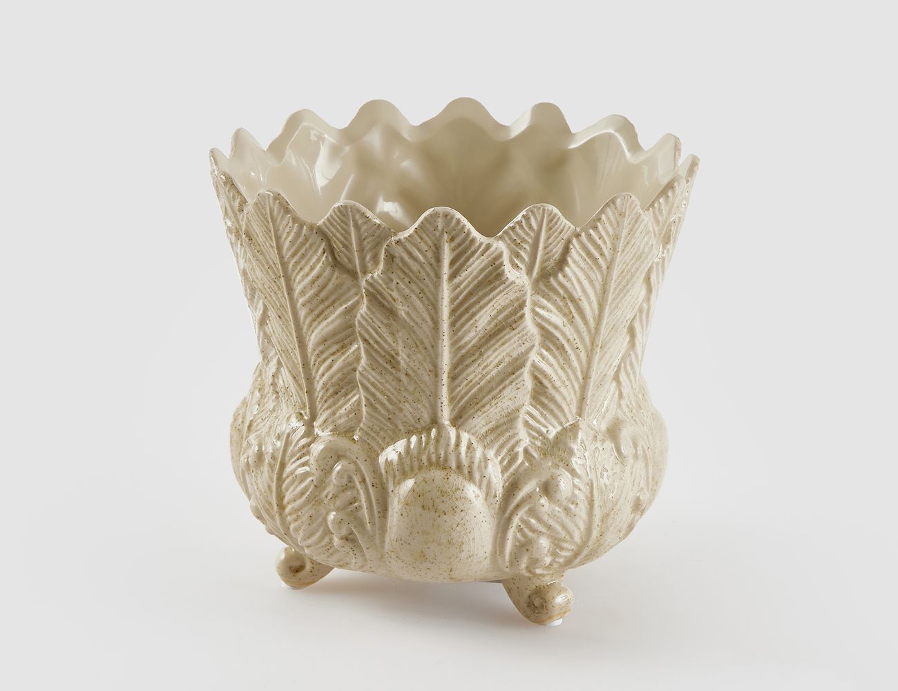 Декоративная ваза-кашпо ФОЛЬЯЖ, керамика, сливочная, 17 см