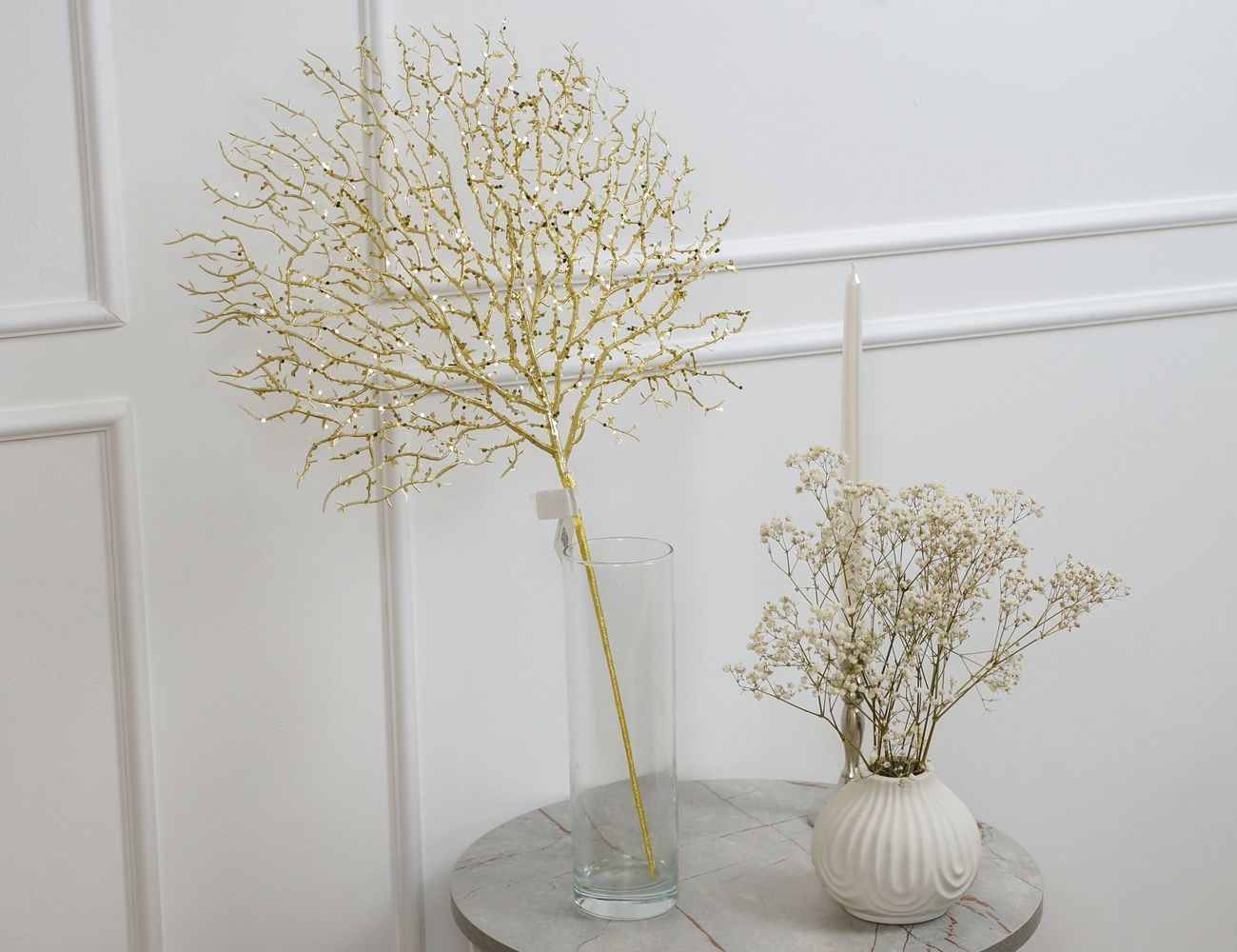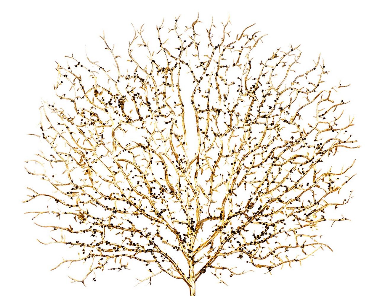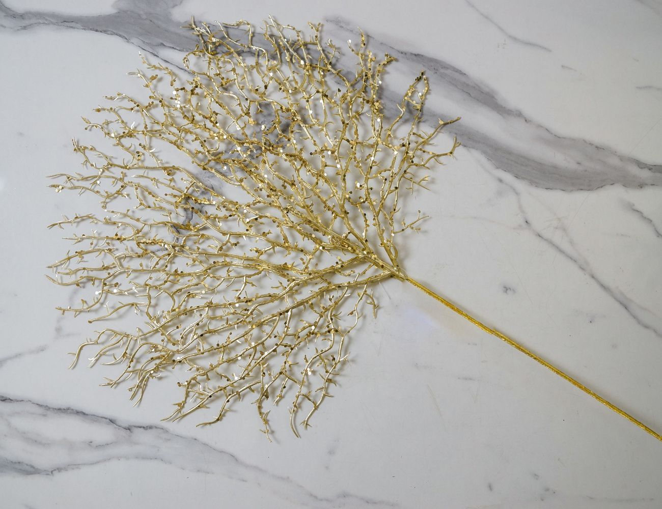 Чтобы увидеть кораллы в природной среде, надо отправиться в путешествие к тёплым морям и, как минимум, уметь плавать с маской и трубкой. Но о том, чтобы вынести из моря коралловую ветку и привезти её домой, даже речи быть не может - это строго запрещено. Декоративная искусственная ветка 'Золотой Коралл' поможет сберечь хрупкий подводный мир и станет оригинальным и красивым акцентом в вашем интерьере, ведь она не только удивительно похожа на природный коралл, но и декорирована чёрными блёстками, создающими очень стильное сочетание с золотистыми веточками!