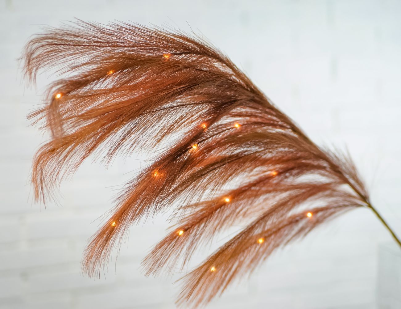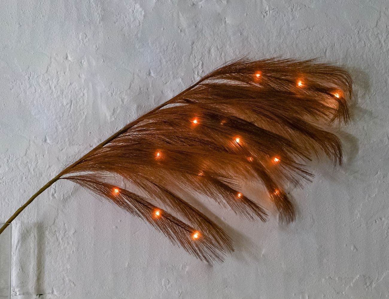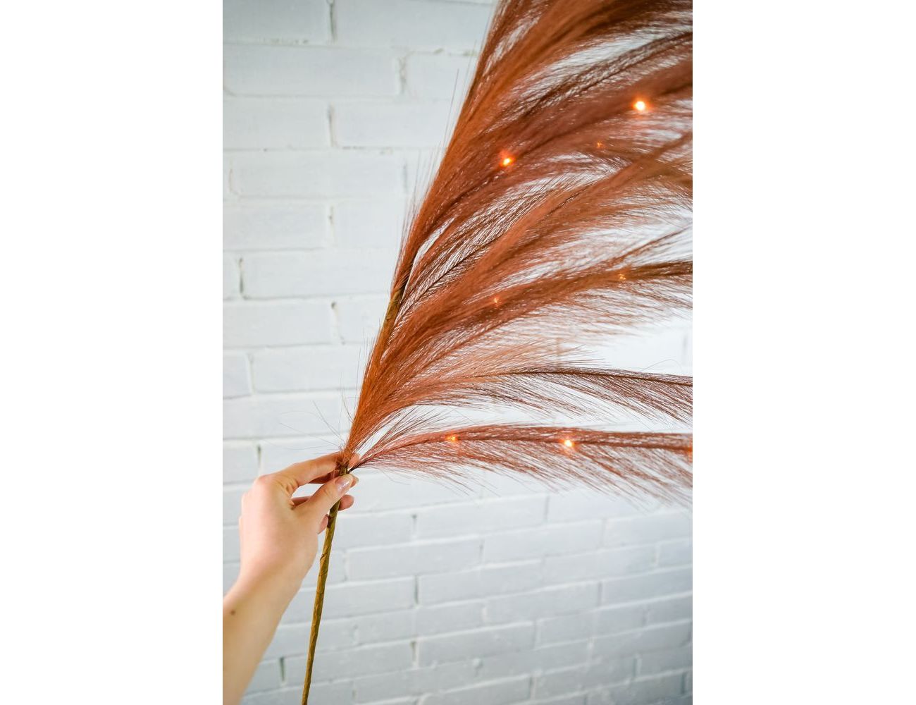 Славные тёплые светлячки спрятались в нежных, шелковистых перьях оттенка корицы, и получилась удивительная декоративная ветка 'Дэллария Бэлла', которая будет очень романтично и эффектно смотреться как сама по себе, так и в стильной композиции, которую можно составить в высокой вазе!