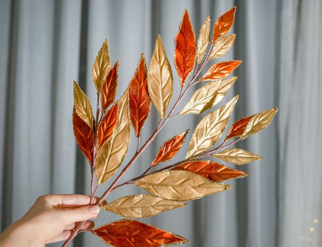 Декоративная ветка СИЦИЛИЙСКАЯ ВЕСНА - СПИРЕЯ КАРАМЕЛЬ, пластик, медная с золотым, 81 см