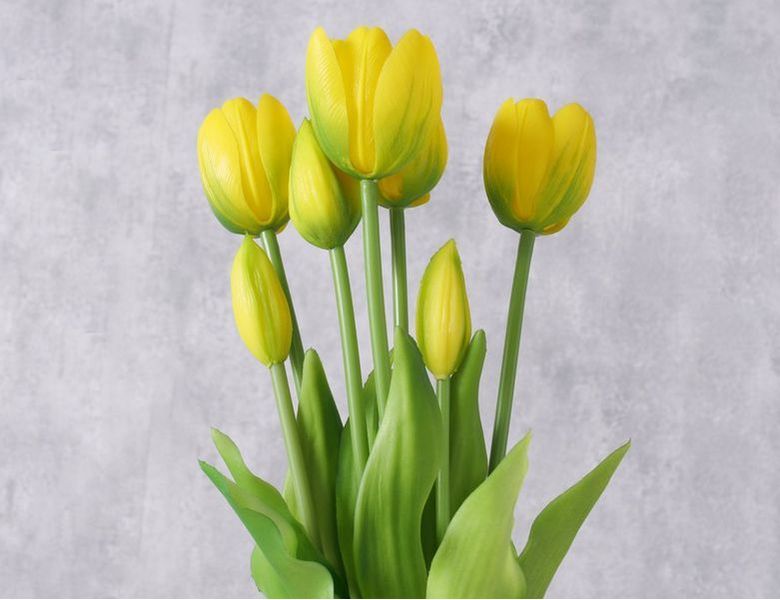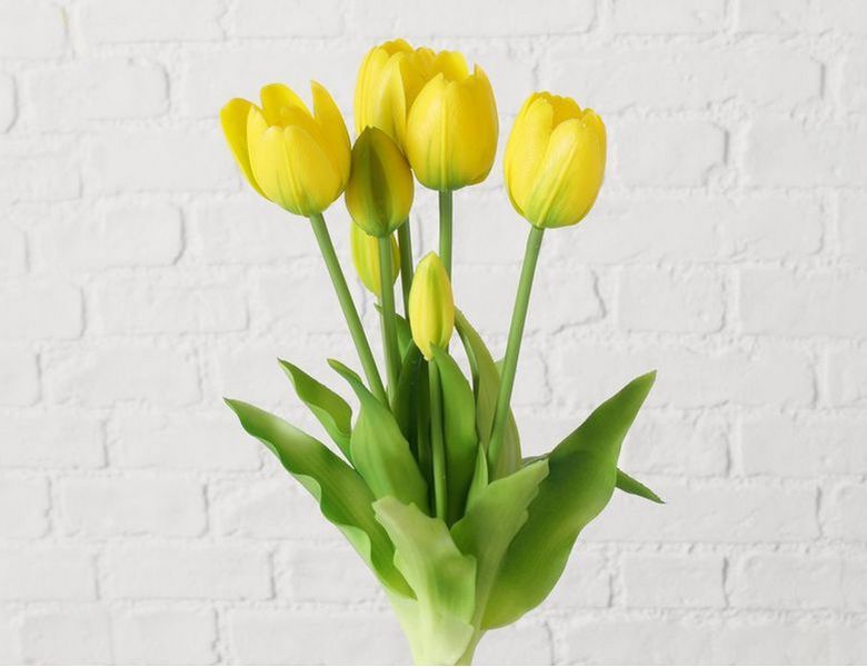 Товары для дачи и сада. Букет искусственных цветов ЖЁЛТЫЕ ТЮЛЬПАНЫ, силикон, 13 см, 5 шт. 2057224. ИнтексКорп - интернет магазин.
