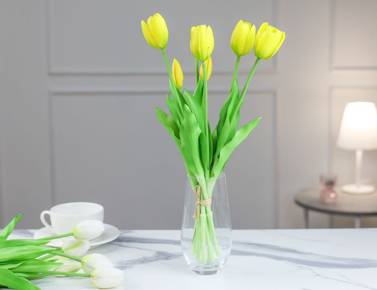Букет искусственных цветов ЖЁЛТЫЕ ТЮЛЬПАНЫ, силикон, 13 см, 5 шт.