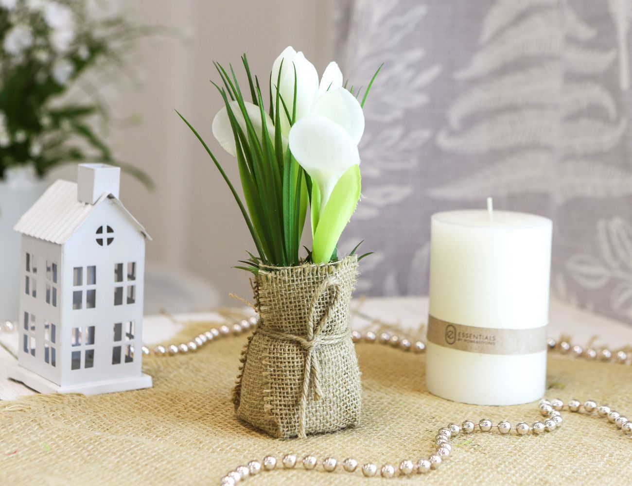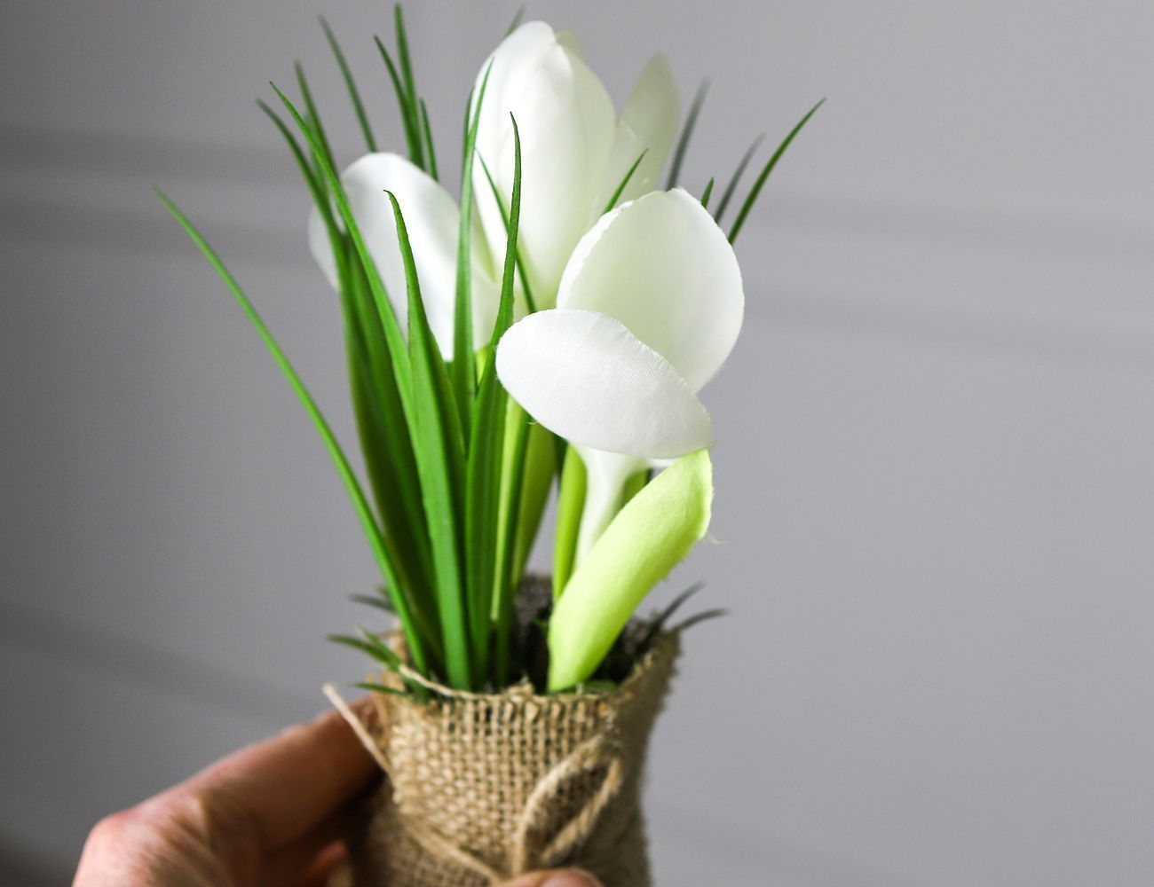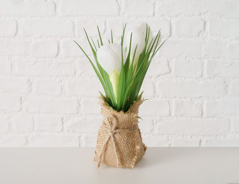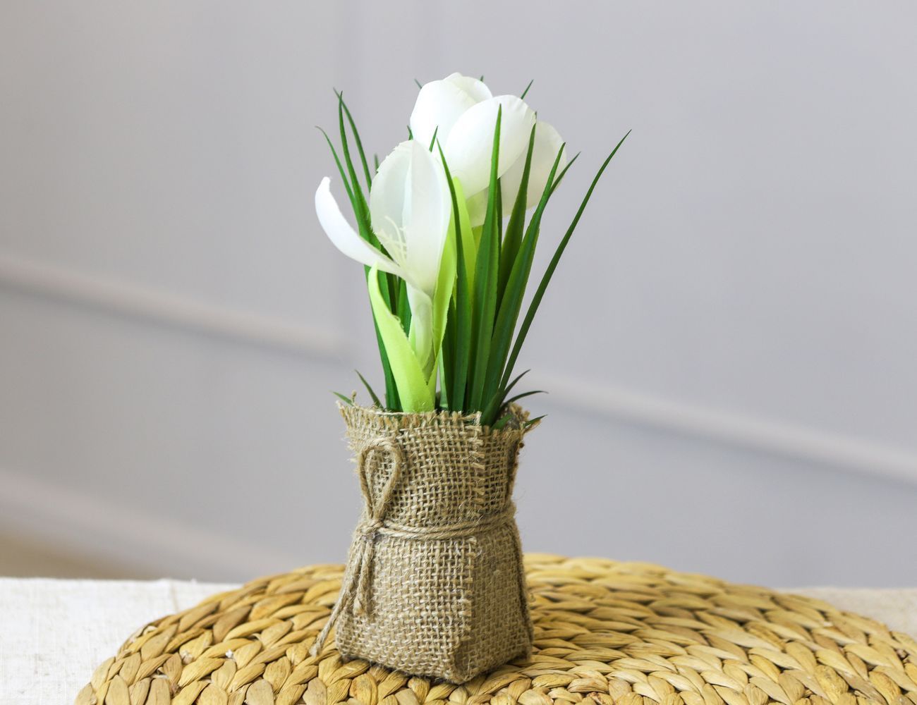 Искусственный цветок в горшке БЕЛЫЙ КРОКУС, пластик, пенополистирол, метал, джут, 19 см