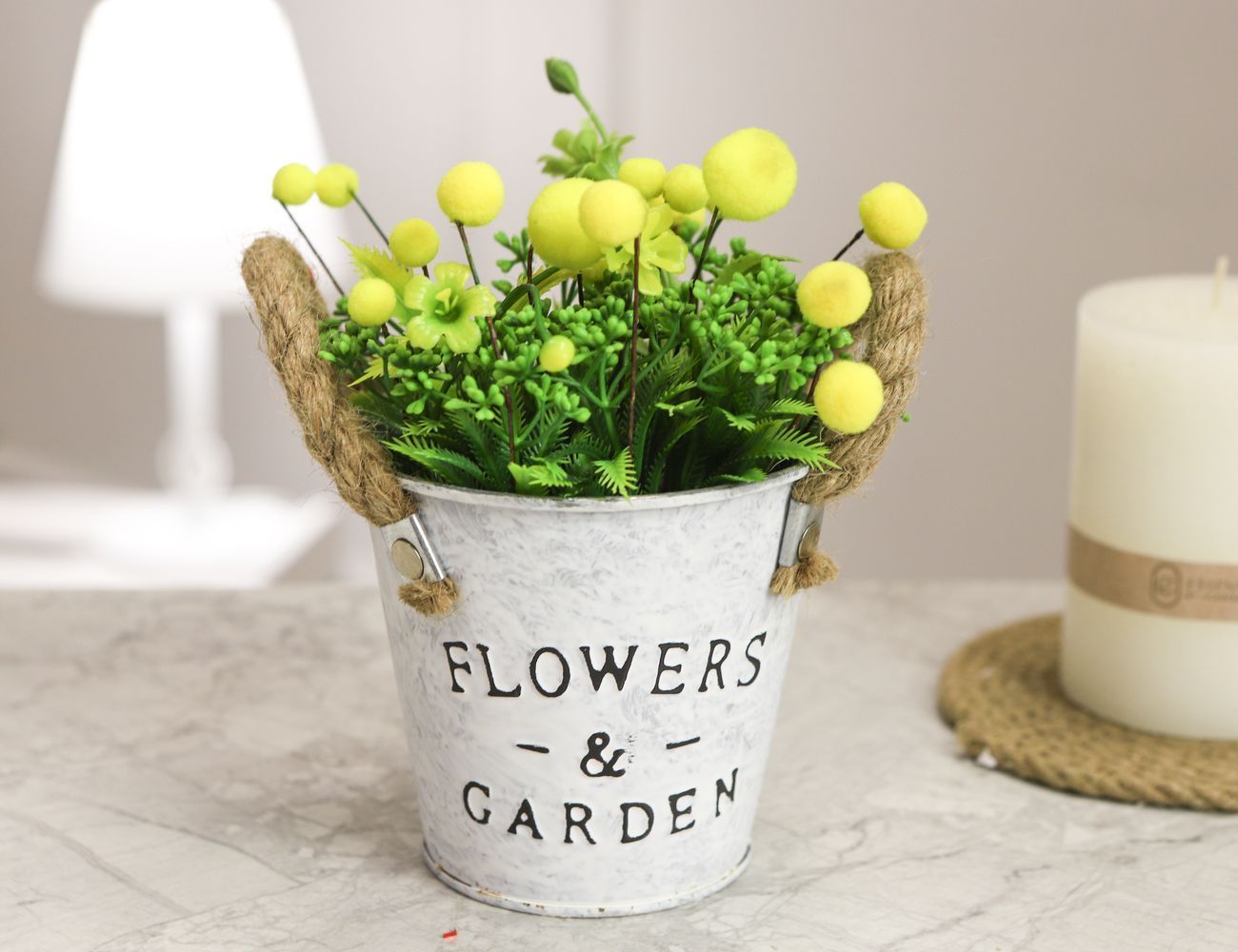 Товары для дачи и сада. Искусственный цветок в горшке ОБРАЗ МИМОЗЫ с полевыми растениями, 19 см XAE22000041-2. ИнтексКорп - интернет магазин.