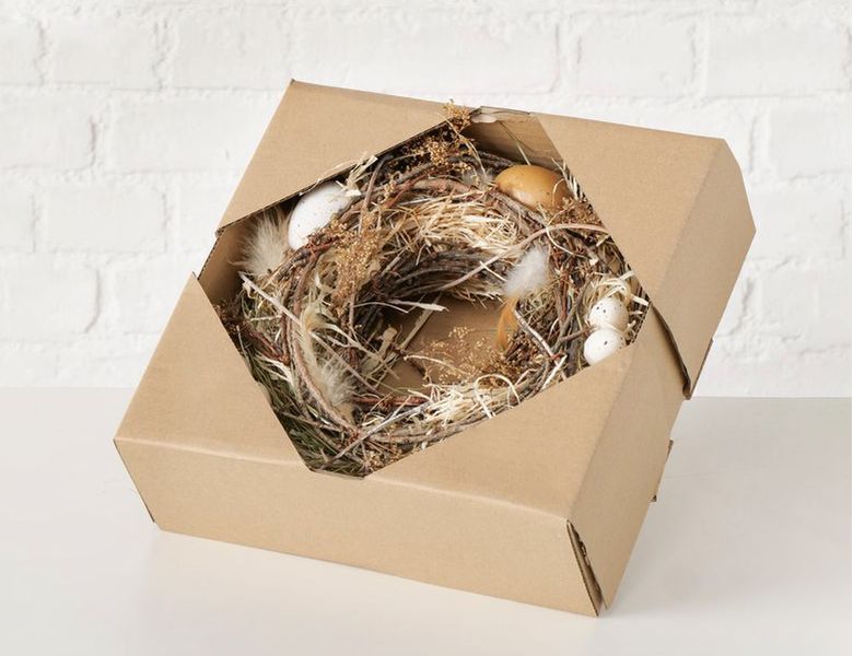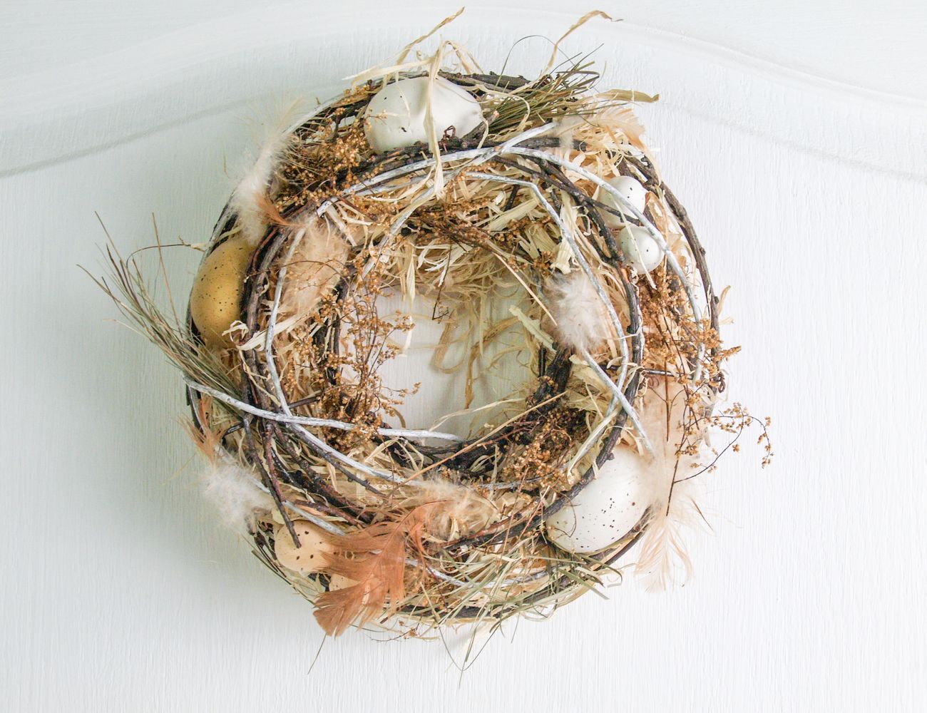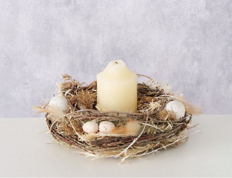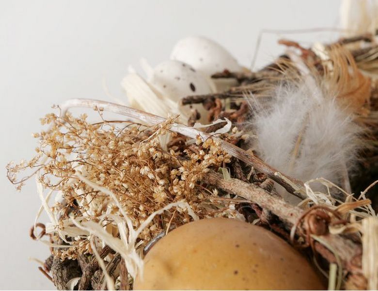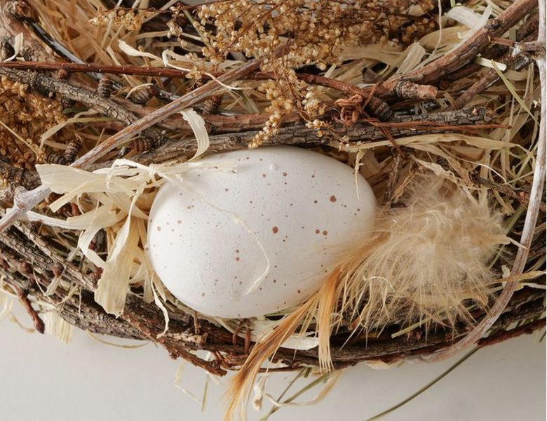Декоративный пасхальный венок СВЕТ ЖИЗНИ, ротанг, солома, перья, полиэстер, 25 см