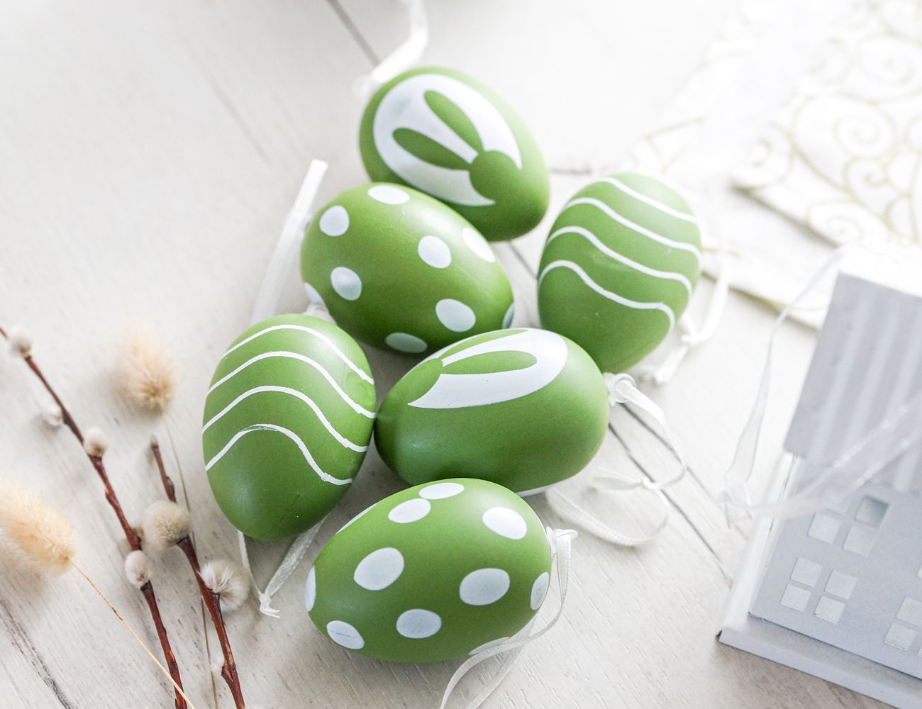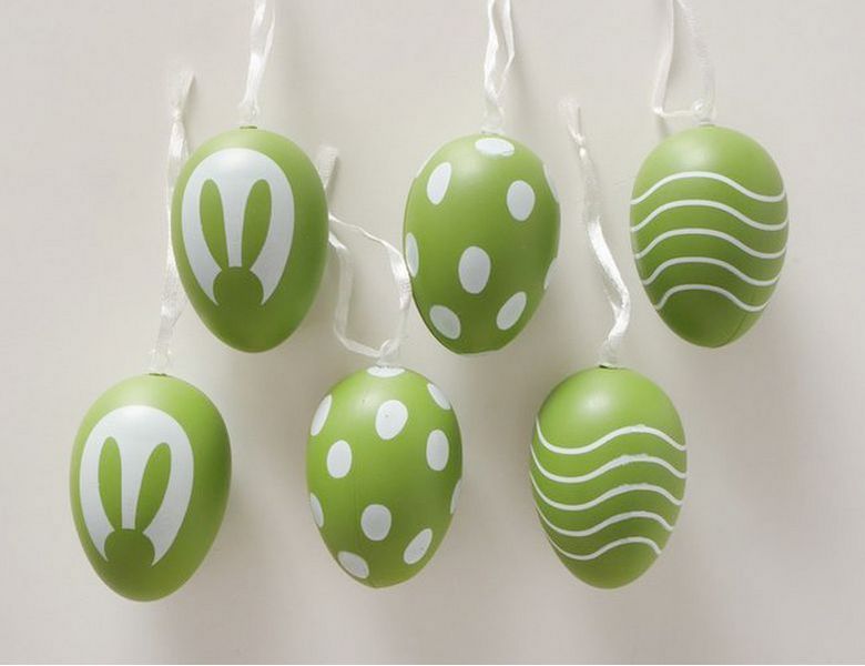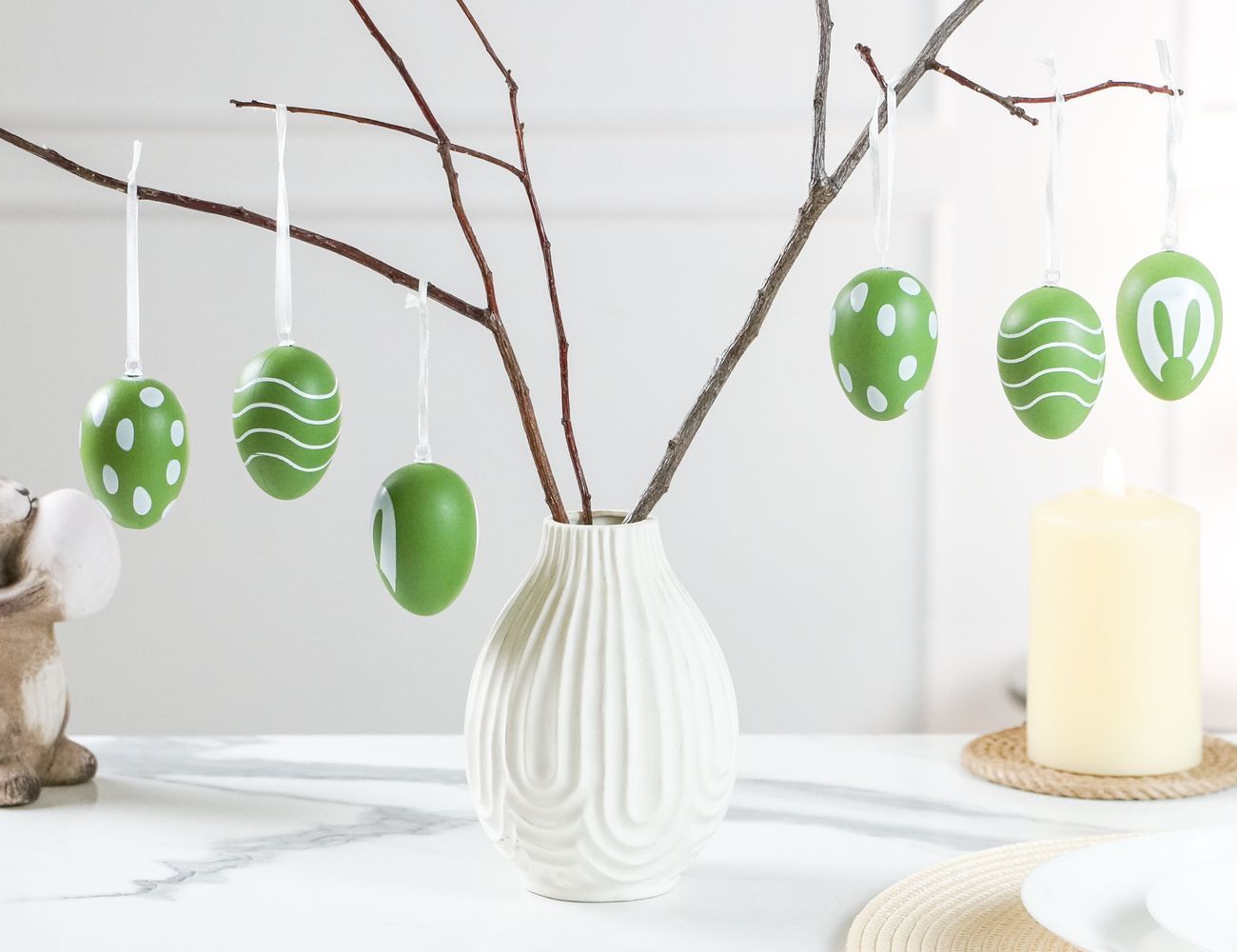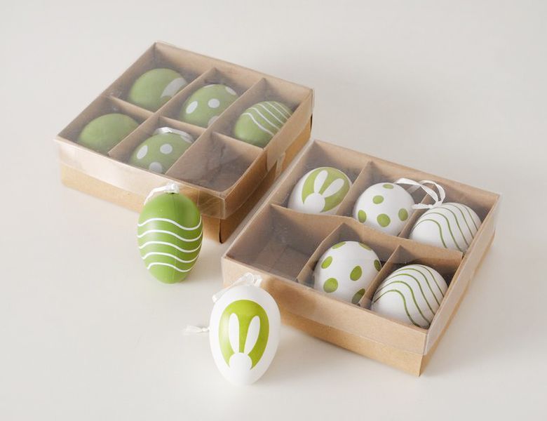 Декоративные подвесные украшения ПАСХАЛЬНОЕ НАСТРОЕНИЕ, натуральная скорлупа, зелёные, 6х4 см, 6 шт.