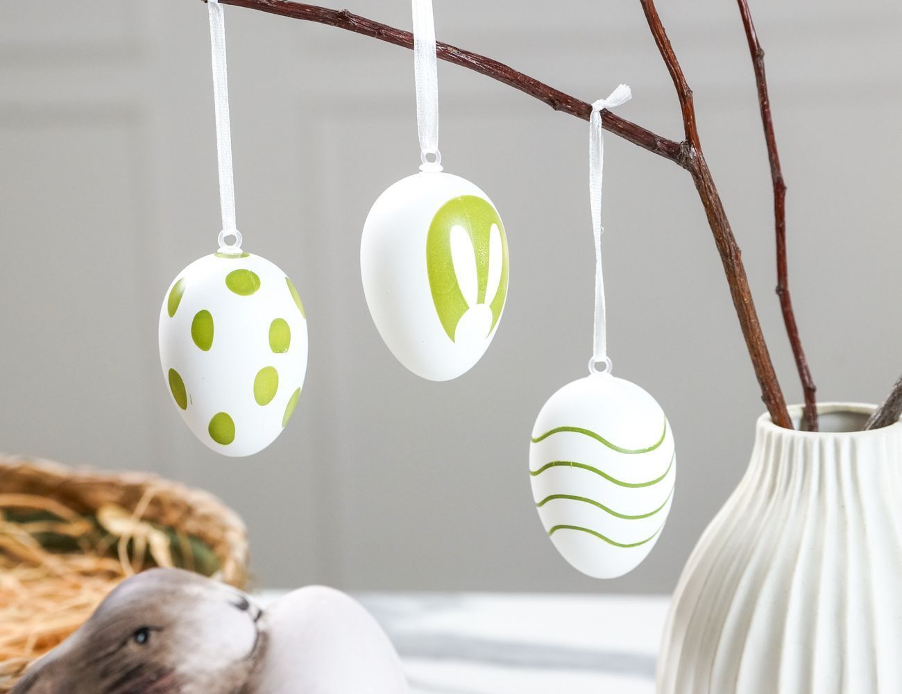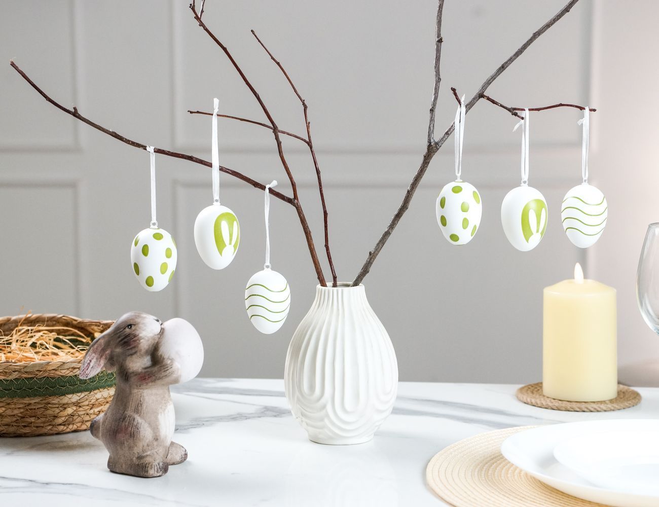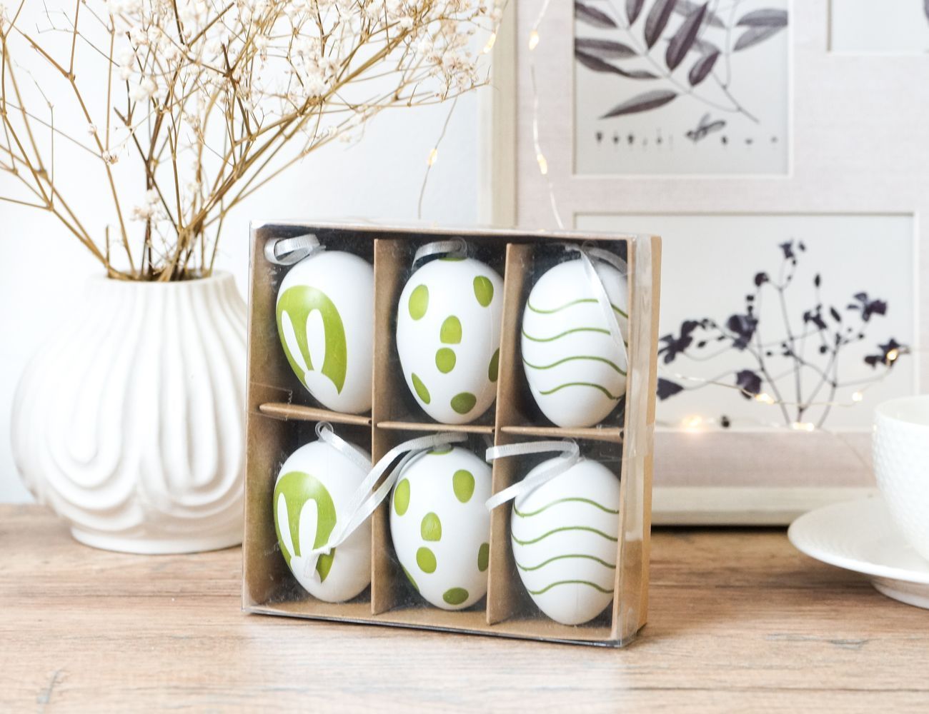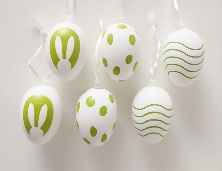 Декоративные подвесные украшения ПАСХАЛЬНОЕ НАСТРОЕНИЕ, натуральная скорлупа, белые, 6х4 см, 6 шт.