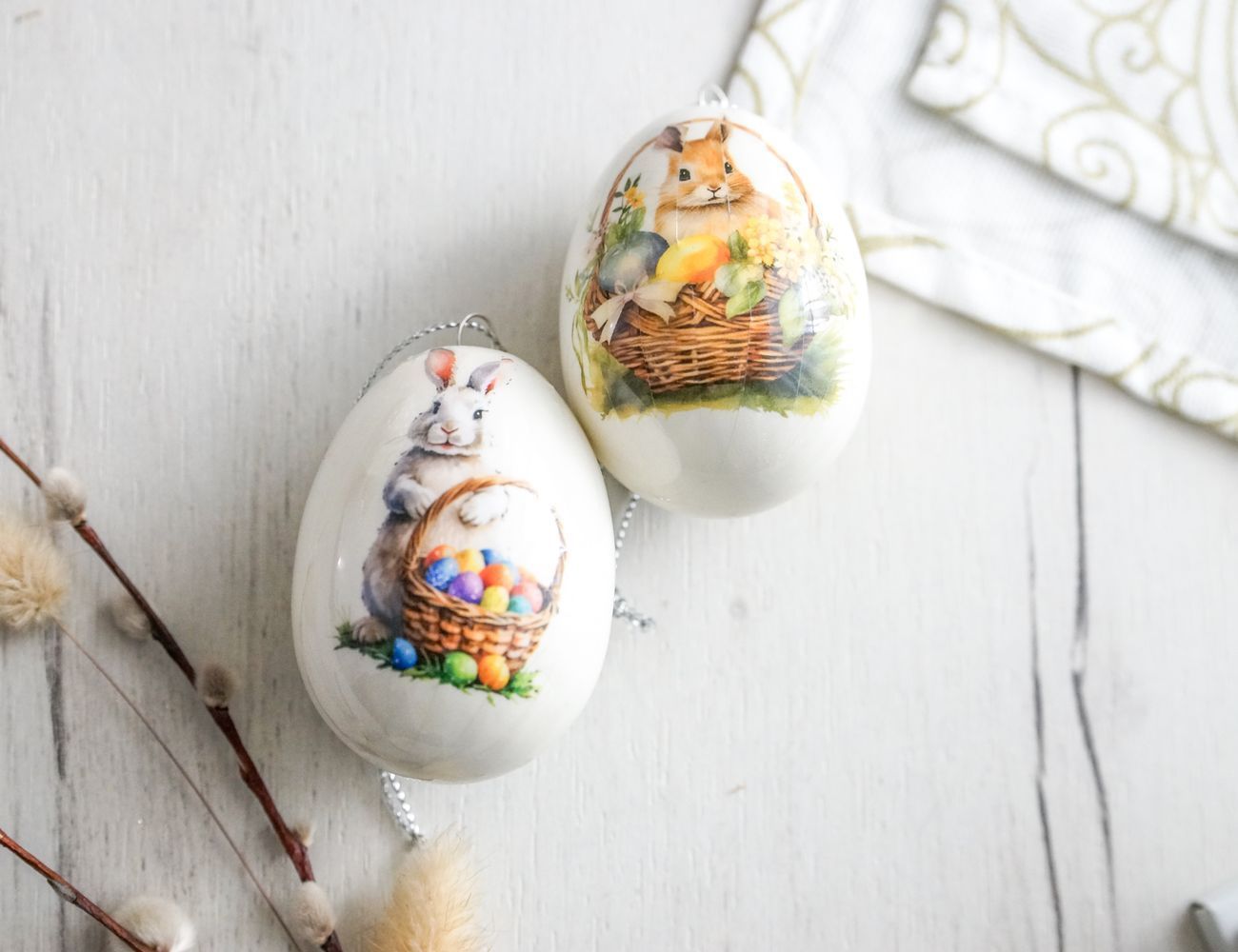 Декоративные пасхальные яйца КРОЛИКИ - МИЛЫЕ УШАСТИКИ, 7 см, 2 шт.
