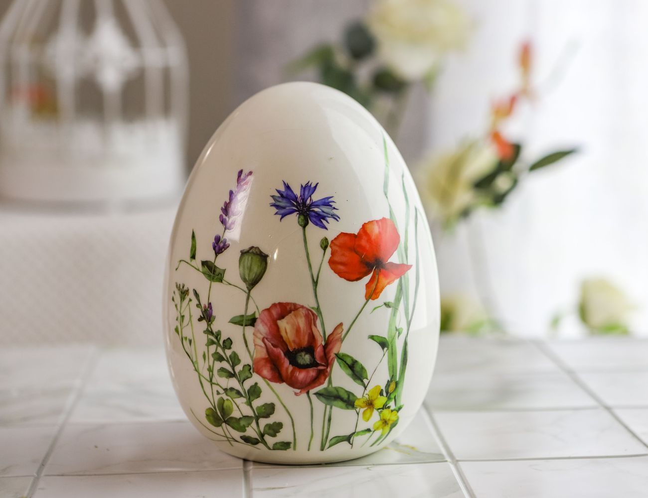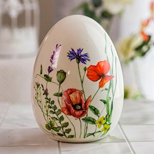 Декоративная фигура - пасхальное яйцо ПОРА ЦВЕТЕНИЯ с маками, керамика, 18х14 см