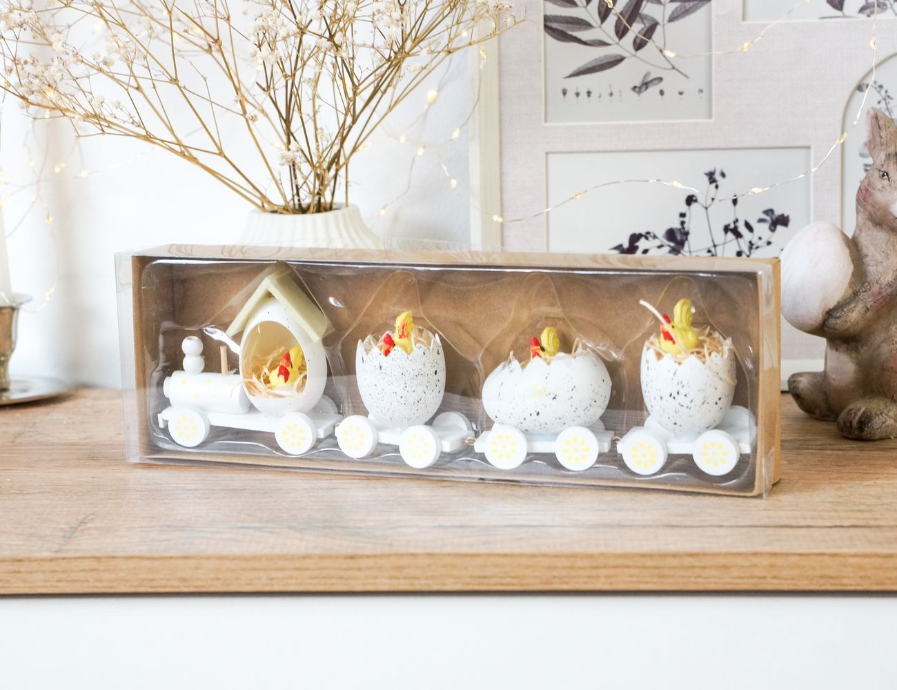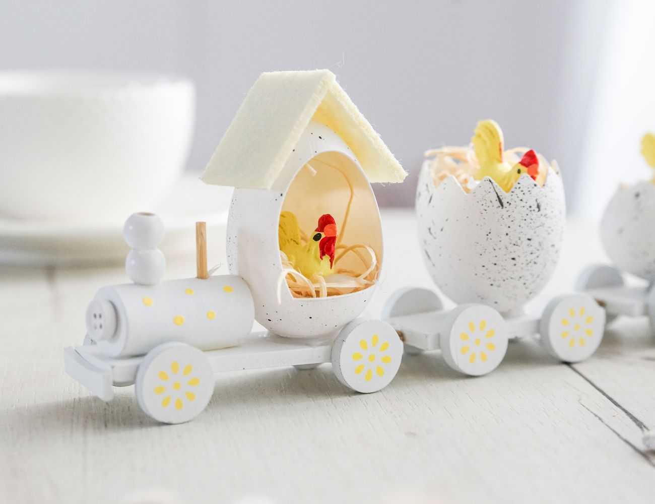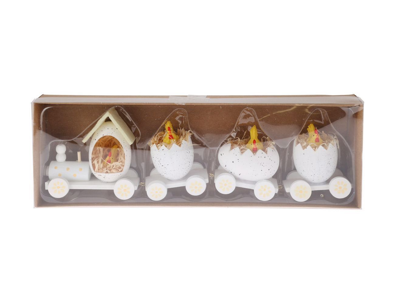 Декоративная композиция ПАСХАЛЬНЫЙ ПАРОВОЗИК, дерево, белый, 19 см