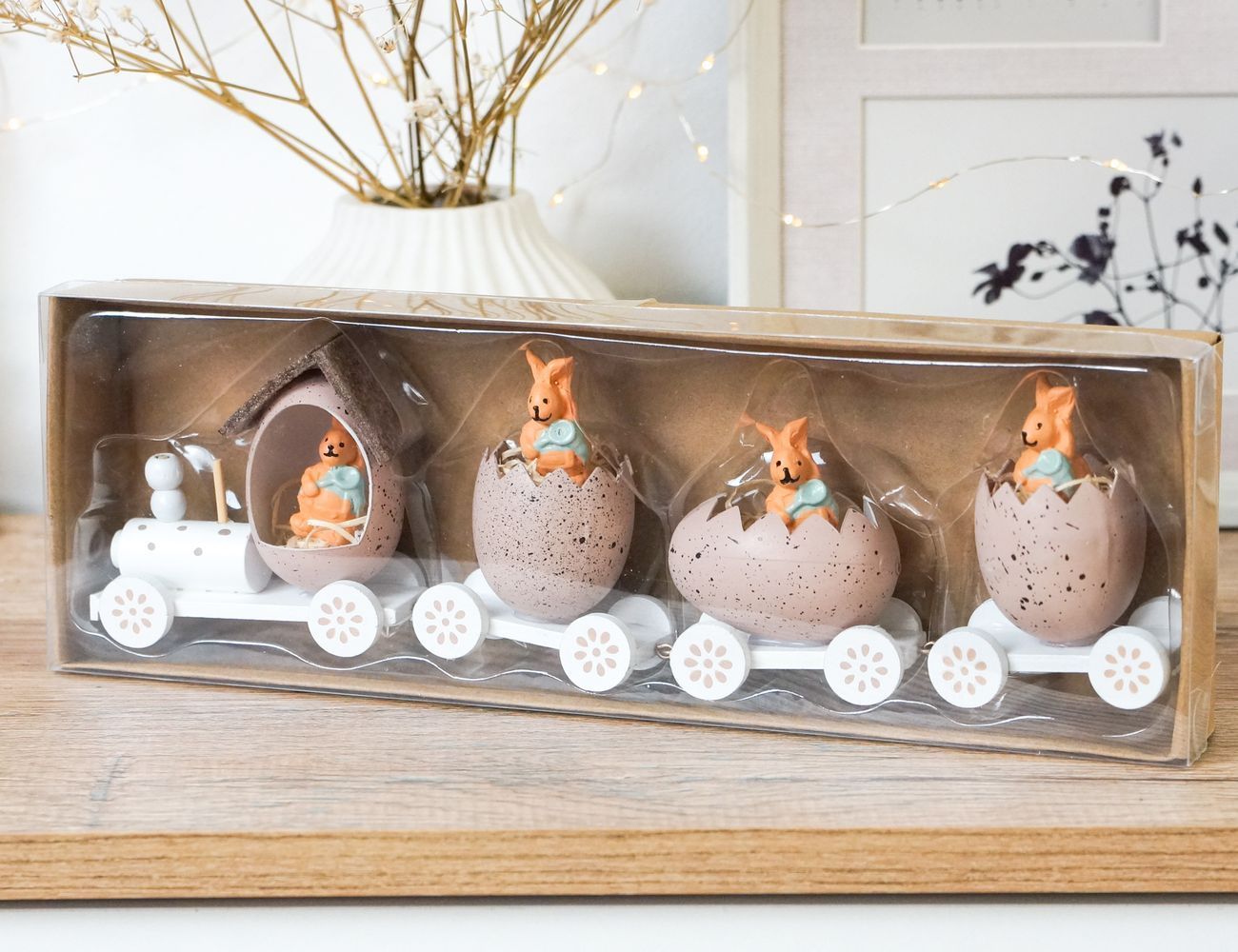 Декоративная композиция ПАСХАЛЬНЫЙ ПАРОВОЗИК, дерево, розовый, 19 см