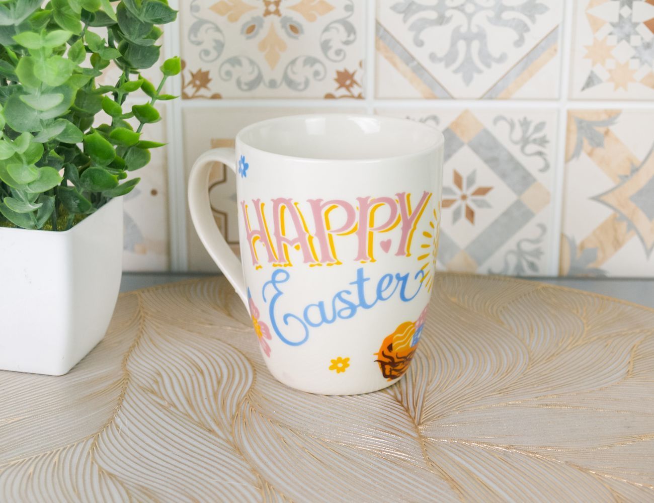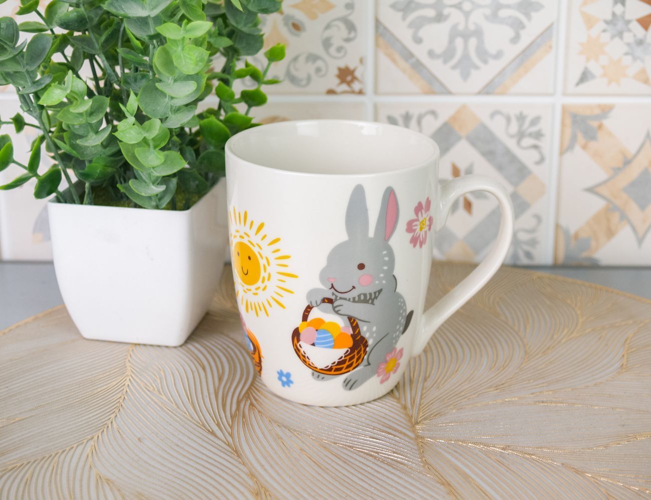 Керамическая чашка КРОЛЬЧОНОК С ПАСХАЛЬНОЙ КОРЗИНКОЙ, 340 мл