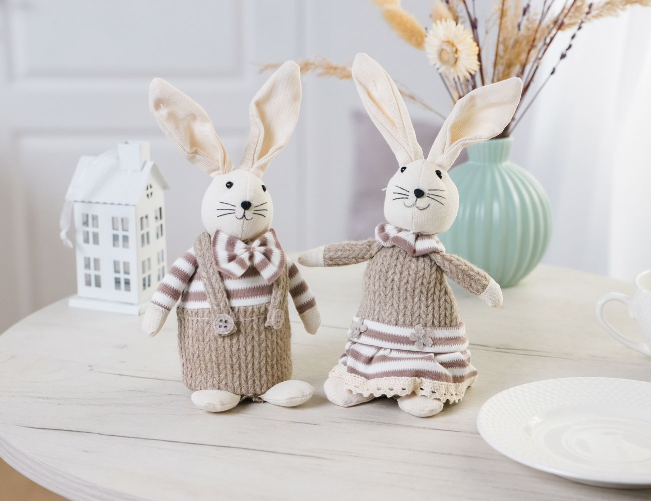 Набор декоративных фигур ЗАЙКИ ХОЛЛИ И ХОУП, текстиль, 22 см, 2 шт.