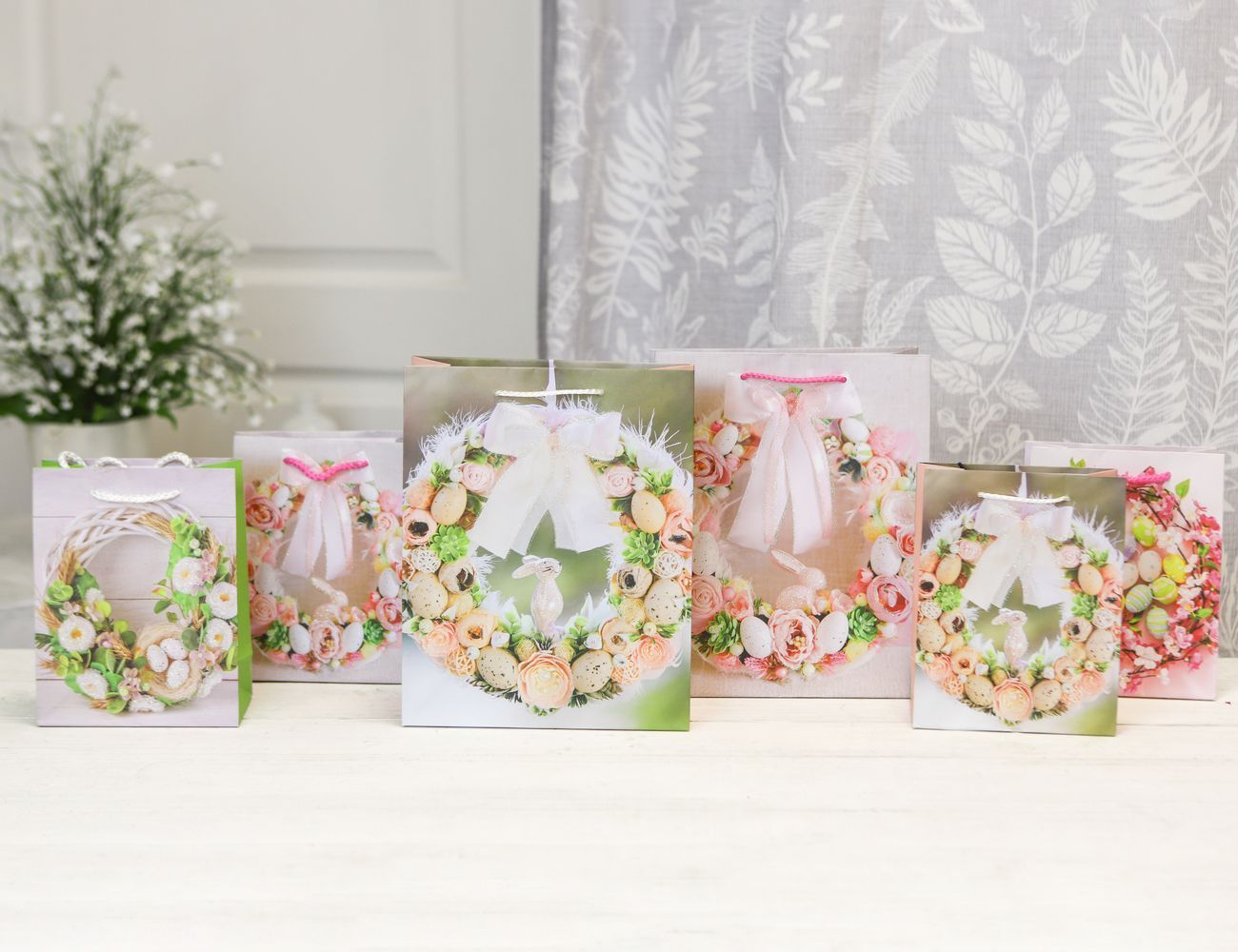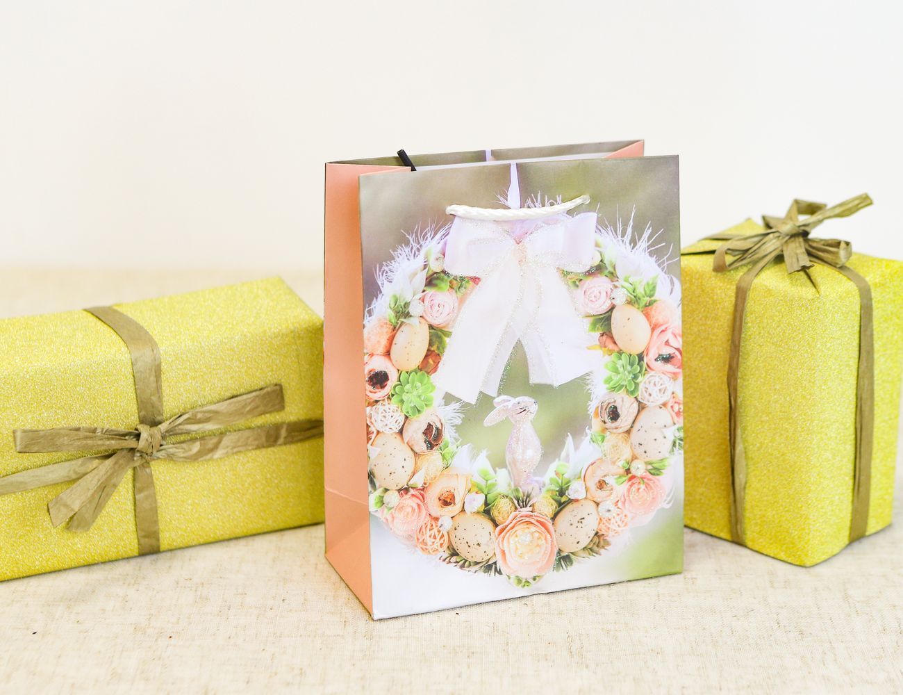 Подарочный пакет ПАСХАЛЬНЫЙ ВЕНОК - КРЕМОВАЯ НЕЖНОСТЬ, бумага, 18х14 см