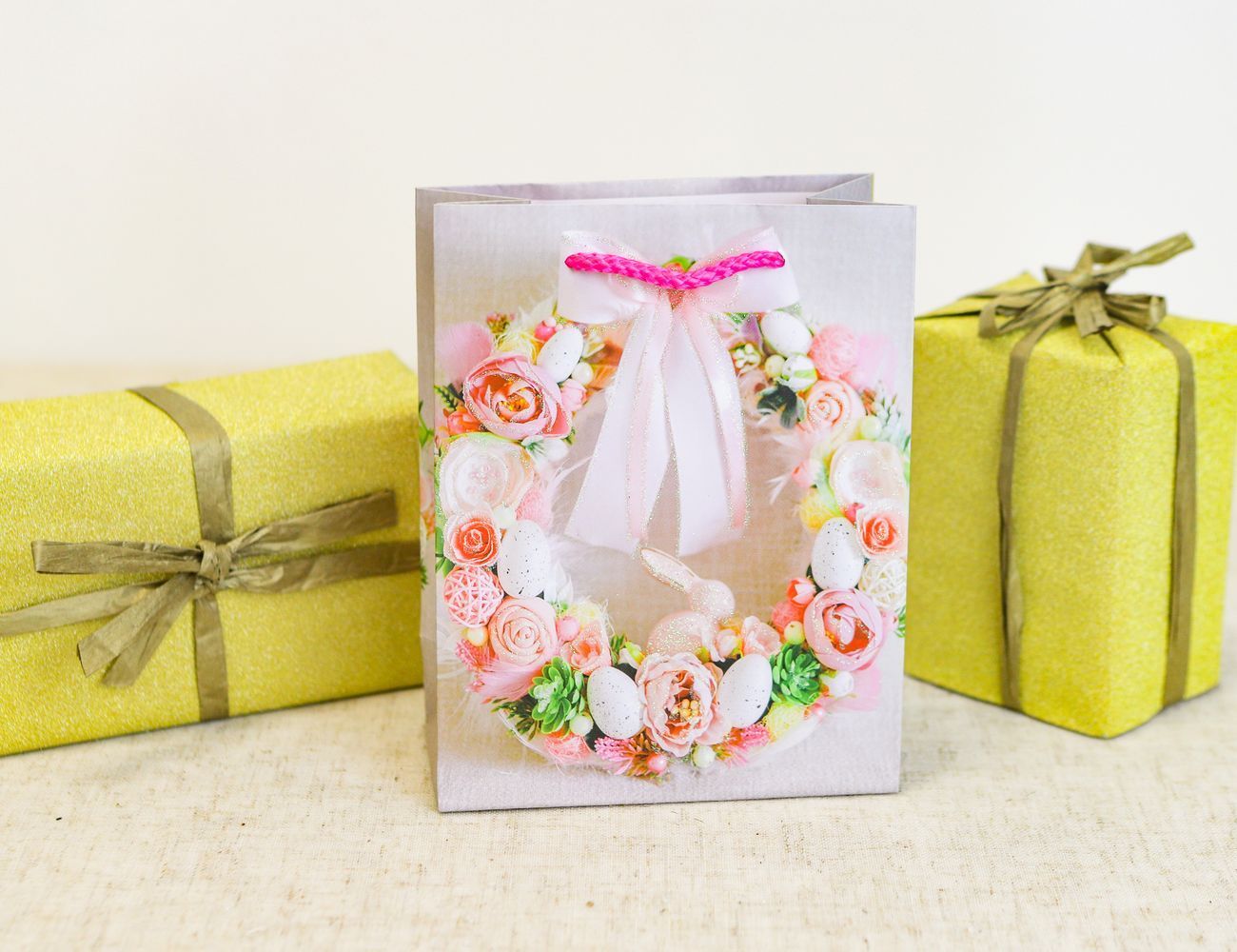 Товары для дачи и сада. Подарочный пакет ПАСХАЛЬНЫЙ ВЕНОК - ВОЗДУШНЫЙ РОЗОВЫЙ, бумага, 18х14 см XPA15000601-3. ИнтексКорп - интернет магазин.