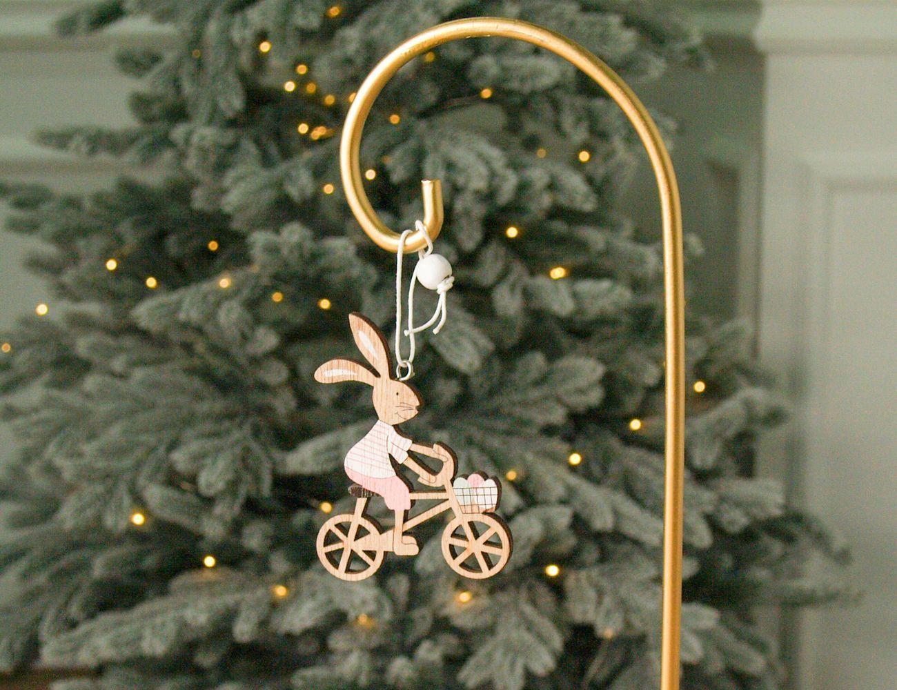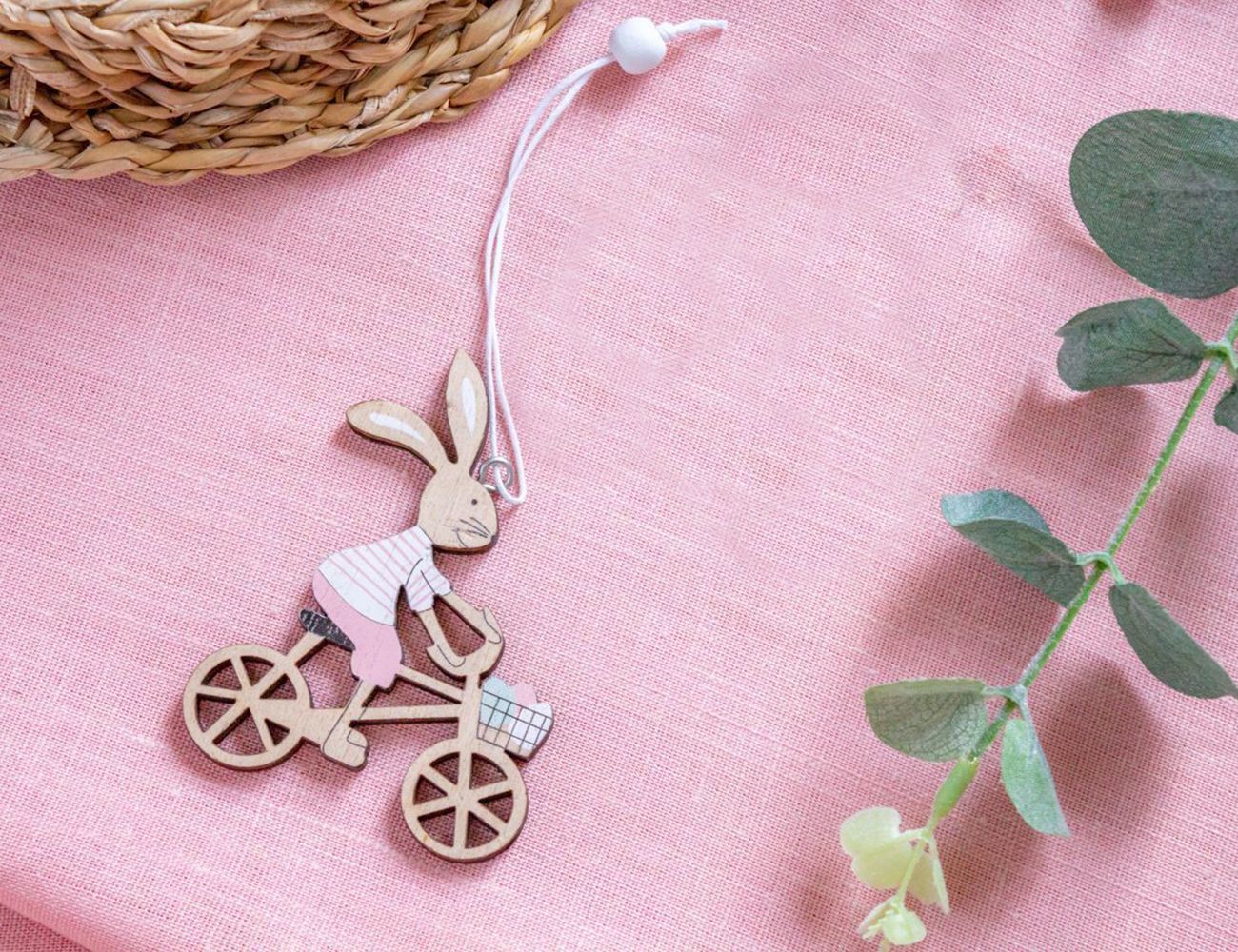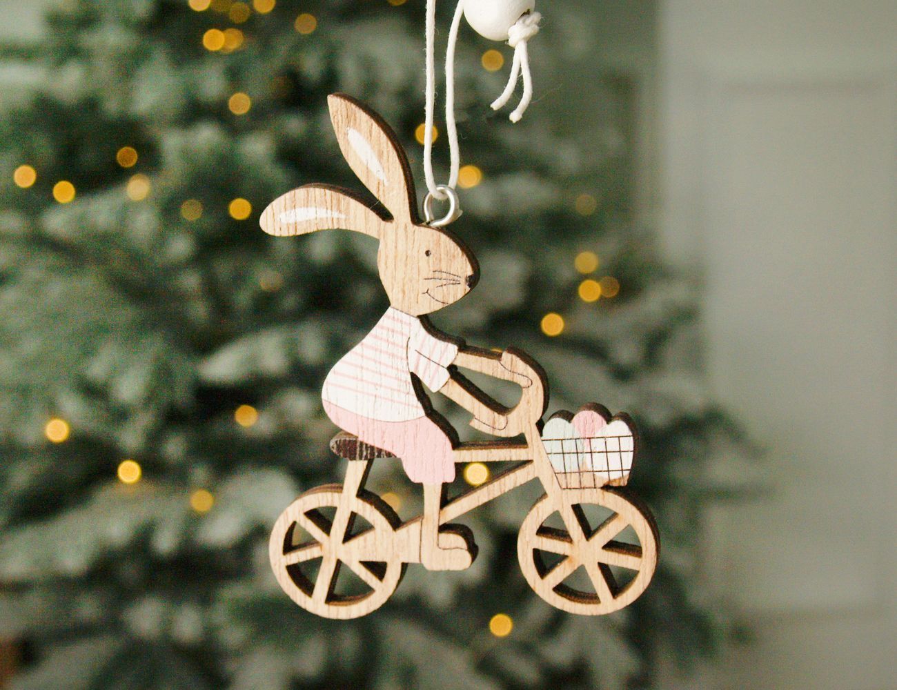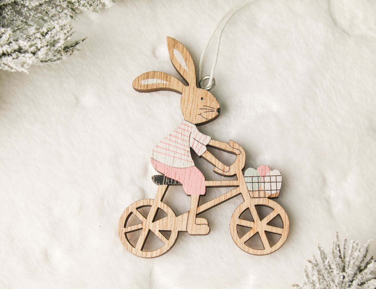 Подвесное украшение КРОЛИК-ВЕЛОСИПЕДИСТ, дерево, 9 см