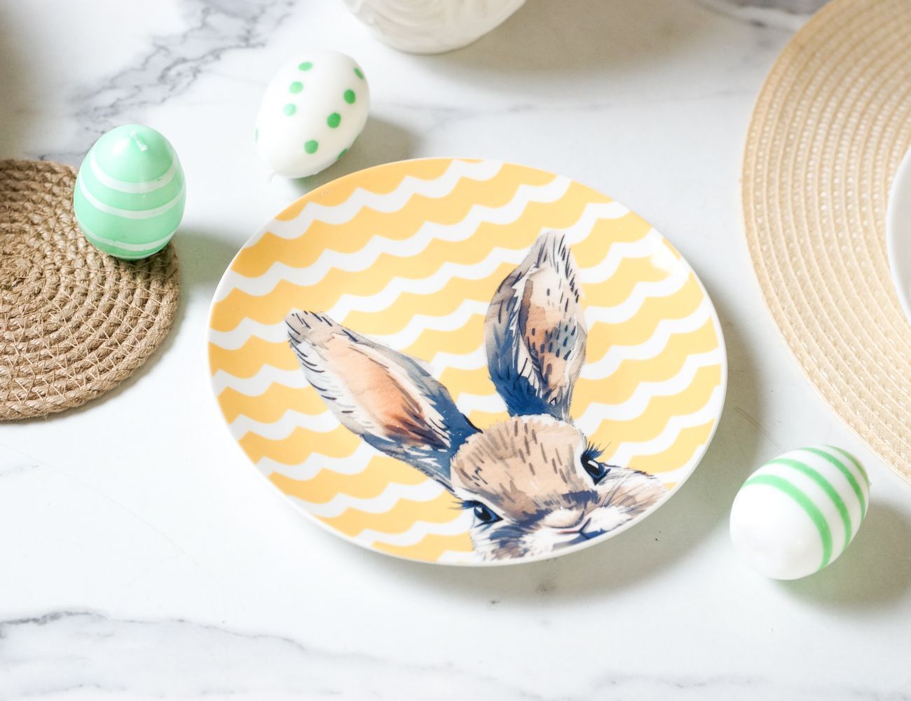 Декоративная тарелка ЛЮБОПЫТНЫЙ КРОЛИК, полипропилен, жёлтая, 19 см