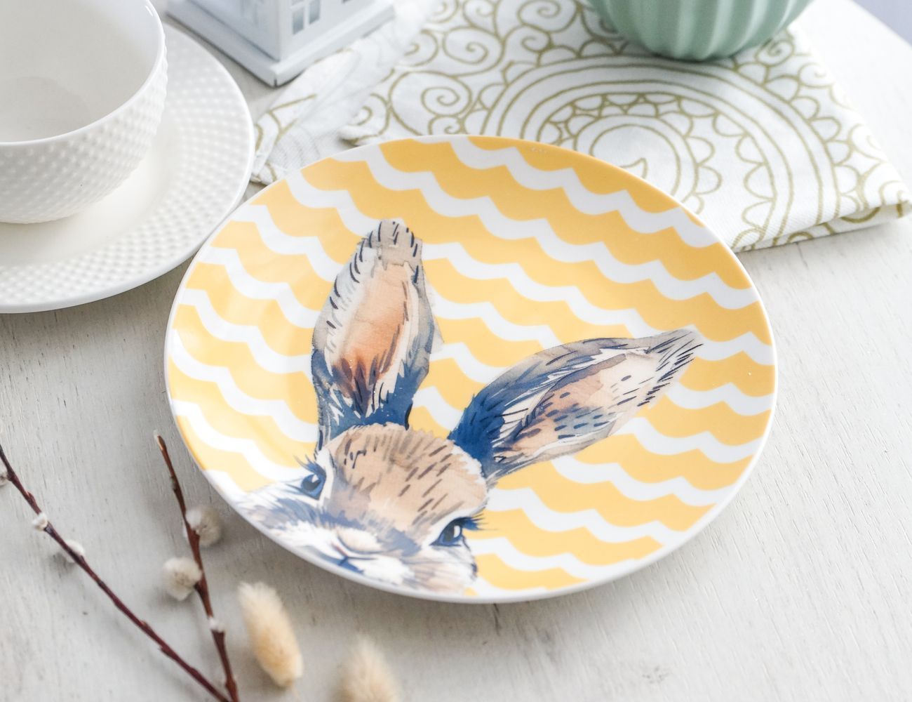 Товары для дачи и сада. Декоративная тарелка ЛЮБОПЫТНЫЙ КРОЛИК, полипропилен, жёлтая, 19 см 170497160-1. ИнтексКорп - интернет магазин.